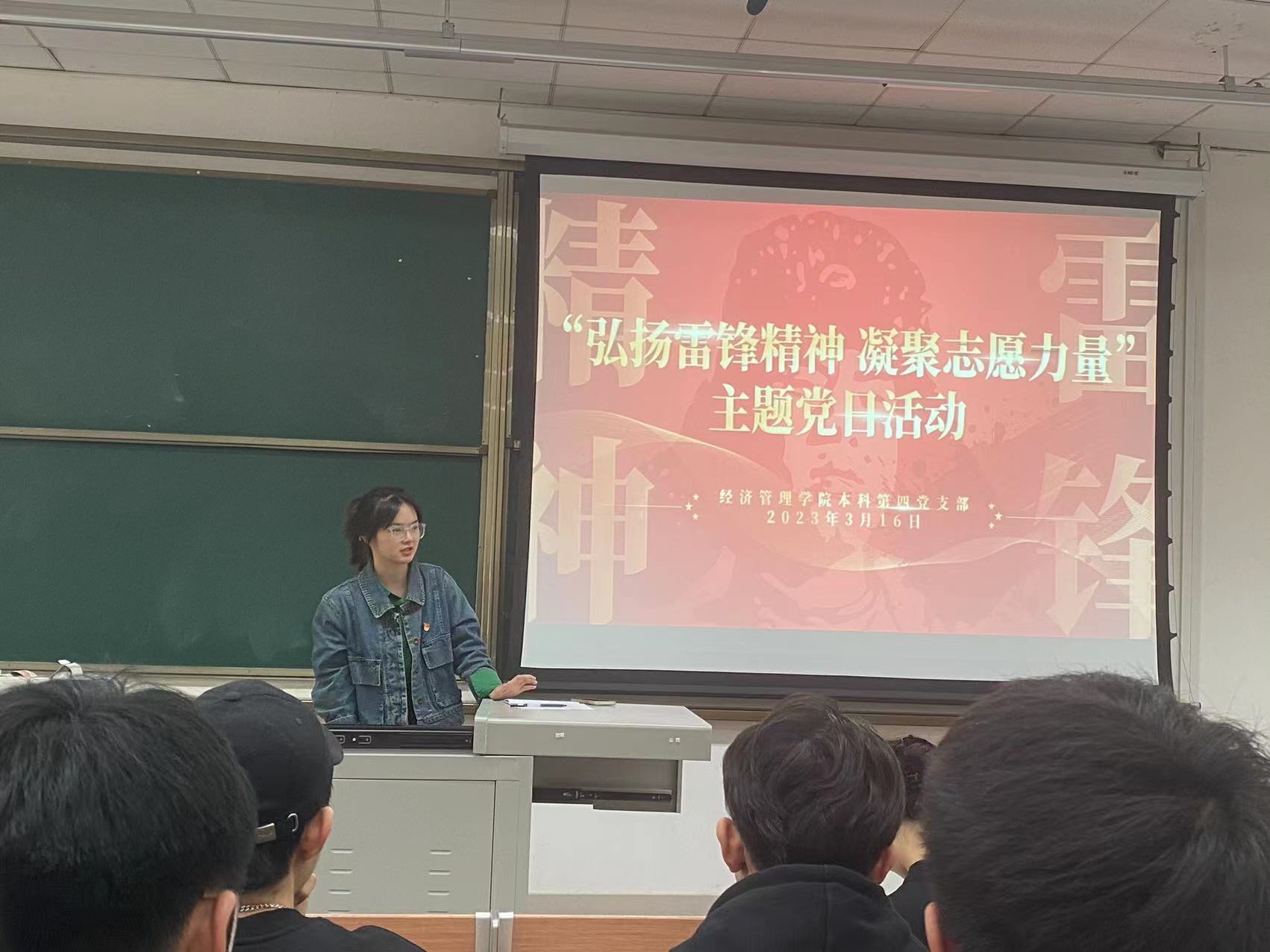 316日,支部开展“弘扬雷锋精神 凝聚志愿力量”专题学习,带领支部成员了解雷锋生平,通过“电影党课”视频深度解析雷锋精神,强调当代青年要深刻把握雷锋精神的时代内涵。多名支部成员上台分享志愿服务活动过程中的感悟,号召每一个人学习和弘扬雷锋精神,让雷锋精神在新时代绽放更加璀璨的光芒。