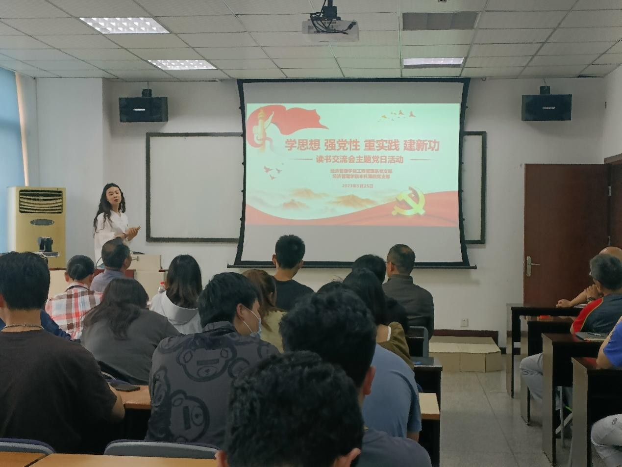为深入开展学习贯彻习近平新时代中国特色社会主义思想主题教育,促进师生党员将理论学习和生活实际相联系,推进师生党员深入联系交流,根据《best365网页版登录官方网站党委关于开展“学思想、强党性、重实践、建新功”读书交流会主题党日的通知》要求,2023年5月25日下午,best365网页版登录官方网站工程管理系党支部和best365网页版登录官方网站本科第四党支部在0317教室联合开展了“学思想、强党性、重实践、建新功”读书交流会主题党日活动,会议由本科第四党支部书记张先凌主持,两支部全体师生党员参加。