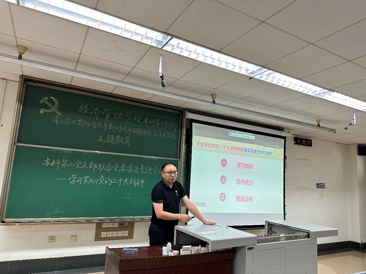 为扎实推进学习贯彻习近平新时代中国特色社会主义思想主题教育,6月8日,best365网页版登录官方网站本科第二党支部邀请党支部联系党委委员杨宏毅副书记为党支部成员讲授专题党课,加强理论学习,接受思想洗礼。