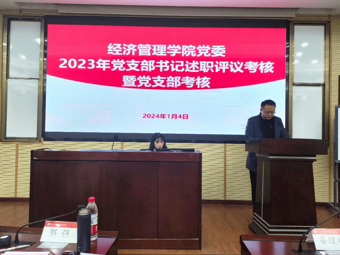 郭强书记对各党支部书记的年度工作述职作了点评和总结。他对各党支部的工作成绩给予了充分肯定,同时也指出了党支部在党建工作中的短板和不足。他针对学院各党支部的工作提出了两点建议:一是各党支部工作要紧密围绕党支部成长提高的目标服务,在做好日常工作的基础上,鼓励优秀党员积极开展帮扶行动,同时研究生党支部也要多组织科研讨论,以加强学风建设;二是各党支部要围绕社会和企业的需求服务,充分发挥经管专业的特色和优势,将优秀经验和实践成果融入工作实践中。