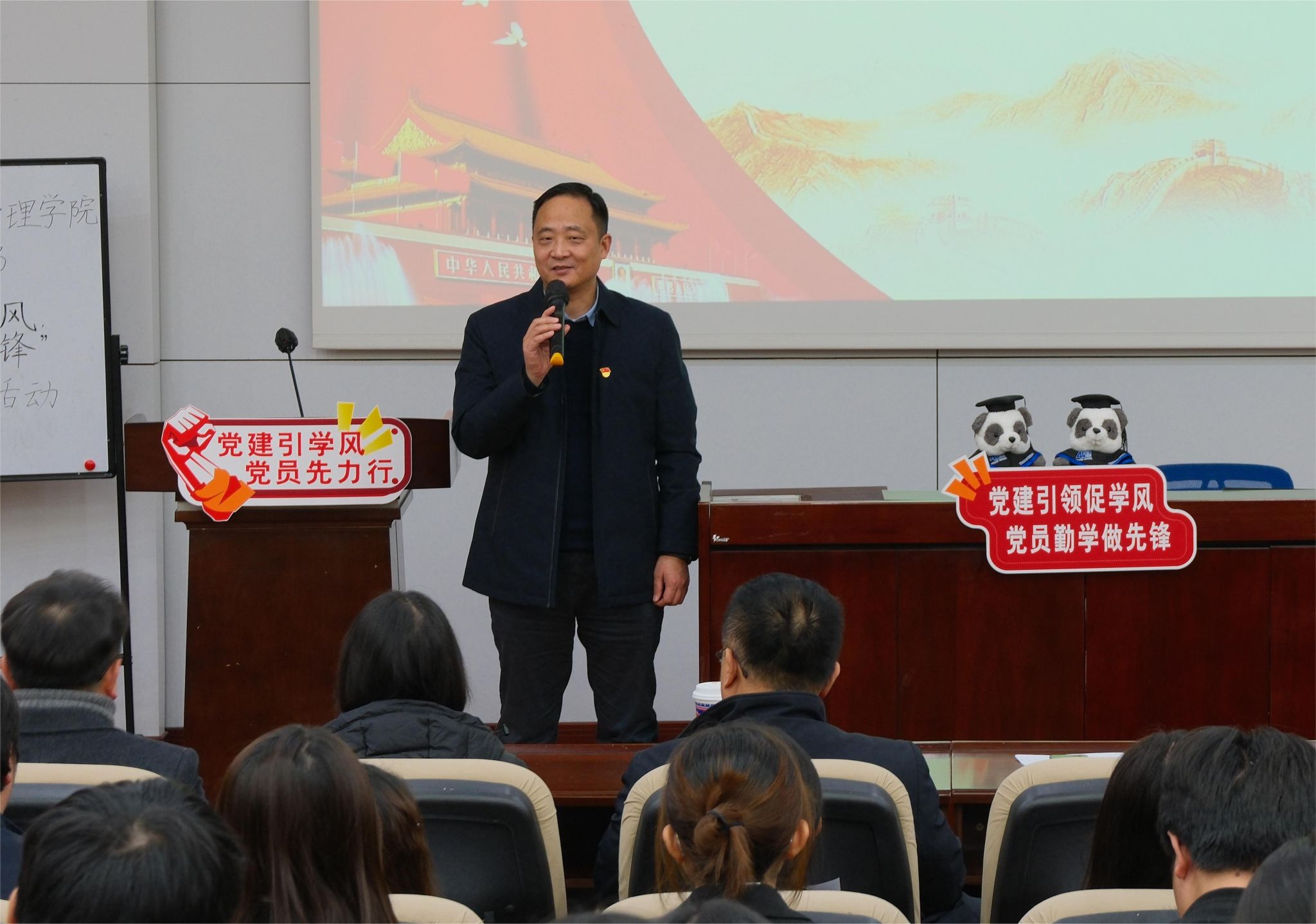 最后,学校党委副书记高平平对活动进行点评。他充分肯定了此次主题党日活动,指出,采用知识竞答和经验分享的形式能提高同学们的参与感和认同感。同时,他希望同学们能够诚信考试,以真实的成绩检验自己的学习成果,争取在期末考试中取得优异成绩。