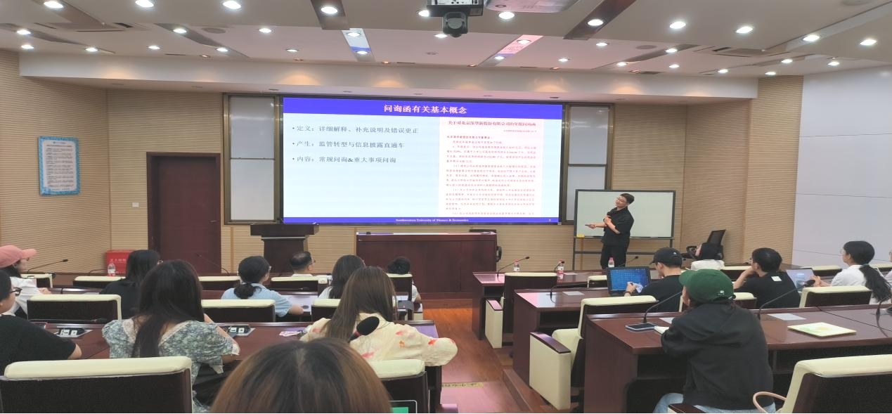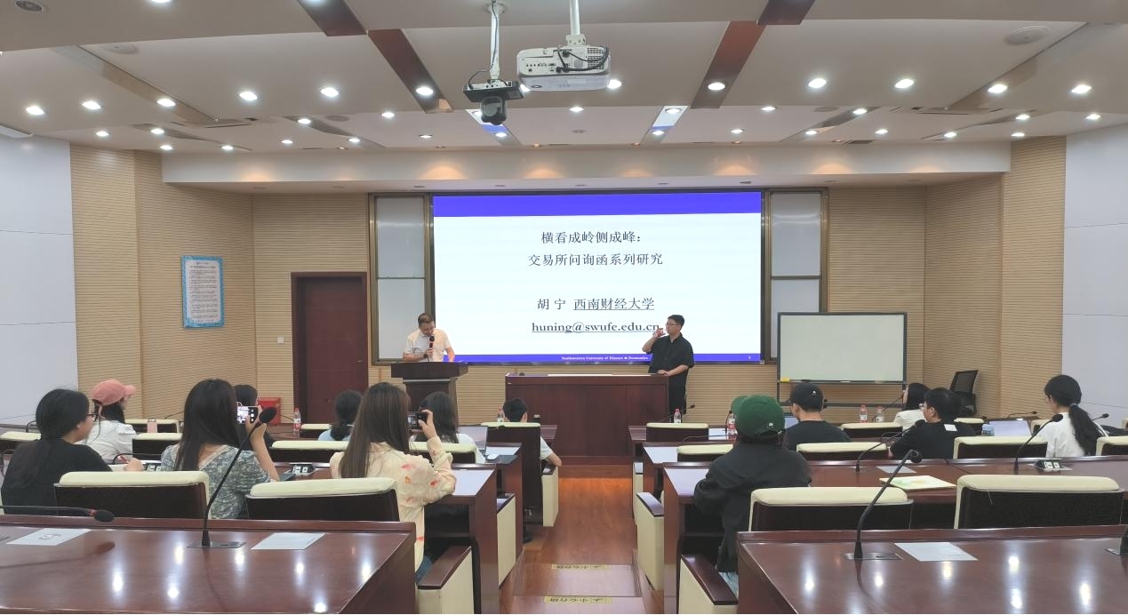 最后,胡宁副教授详细解答了在场老师和同学们有关问询函的相关问题,并进行了热烈的讨论,提出了许多新的想法。诸波老师向胡宁副教授的学术分享表达了诚挚的感谢,并期待未来和西南财经大学老师们有更多的交流与合作。