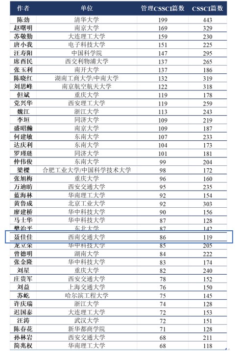 注:管理CSSCI篇数是指期刊名称带“管理”二字的CSSCI期刊论文篇数,CSSCI篇数是指该学者所有CSSCI期刊论文数,数据来源为CNKI,仅供参考。
