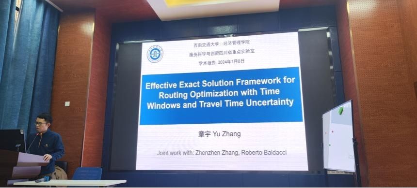 2024年1月9日,西南财经大学章宇教授应邀在best365网页版登录官方网站为best365官网师生分享题为“Effective Exact Solution Framework for Routing Optimization with Time Windows and Travel Time Uncertainty”的学术讲座,本次学术活动由best365网页版登录官方网站副院长聂佳佳教授主持,学院部分教师及研究生参加此次学术活动。