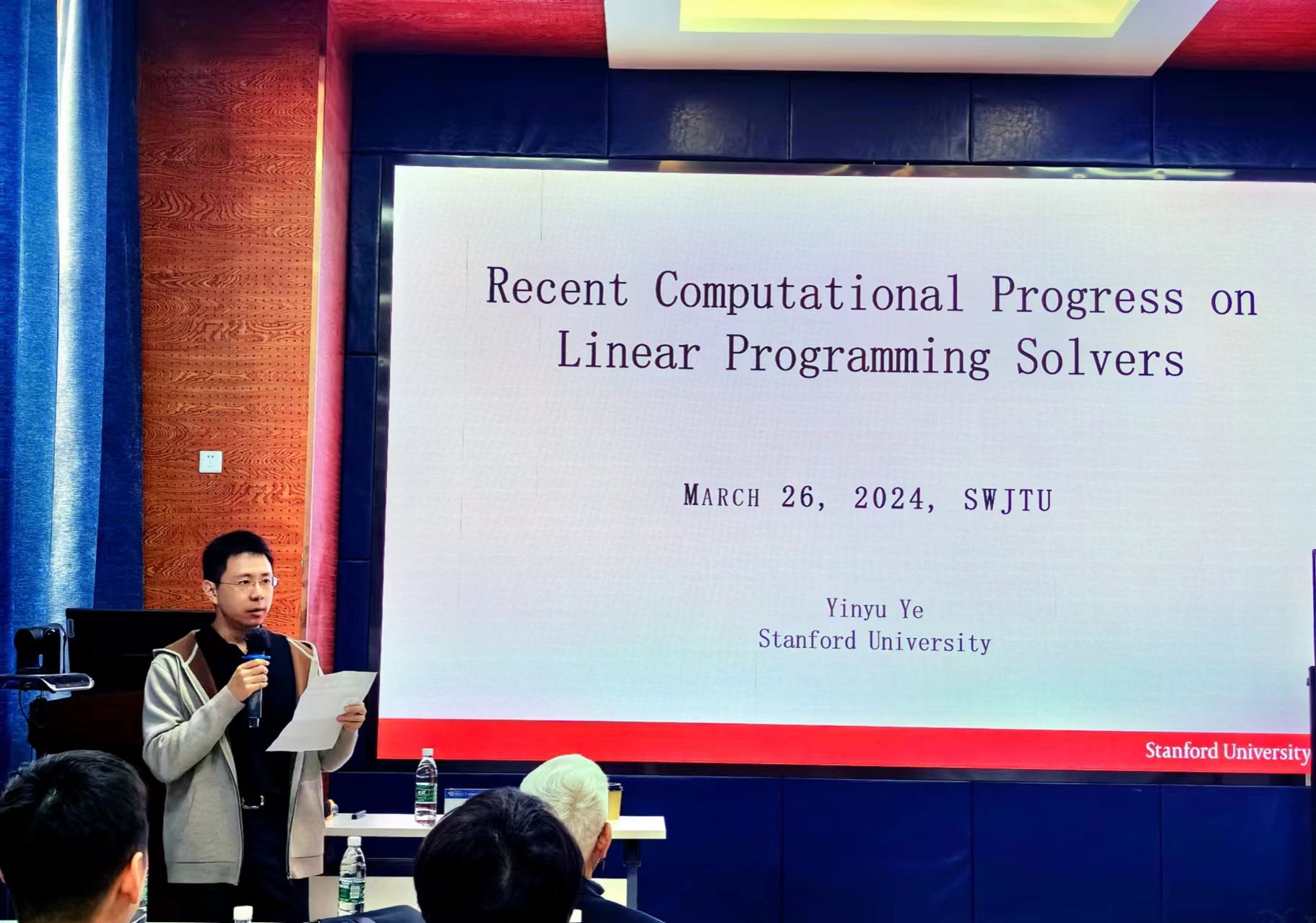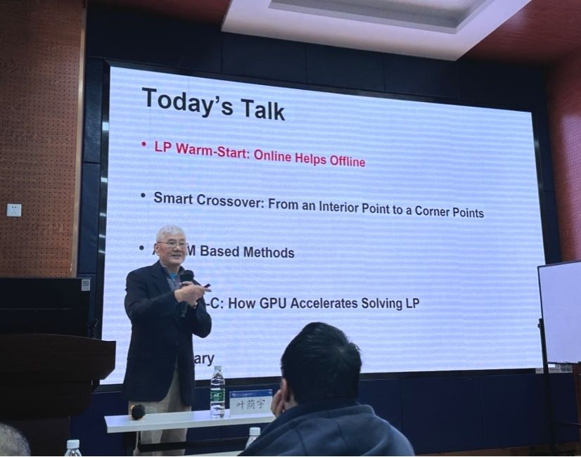 2024年3月26日,美国斯坦福大学叶荫宇教授应邀在best365网页版登录官方网站为best365官网师生分享题为“Recent Computational Progress on Linear Programming Solvers”的学术讲座。本次学术活动由学院院长韩科教授主持,学院教师及研究生聆听了本次讲座。