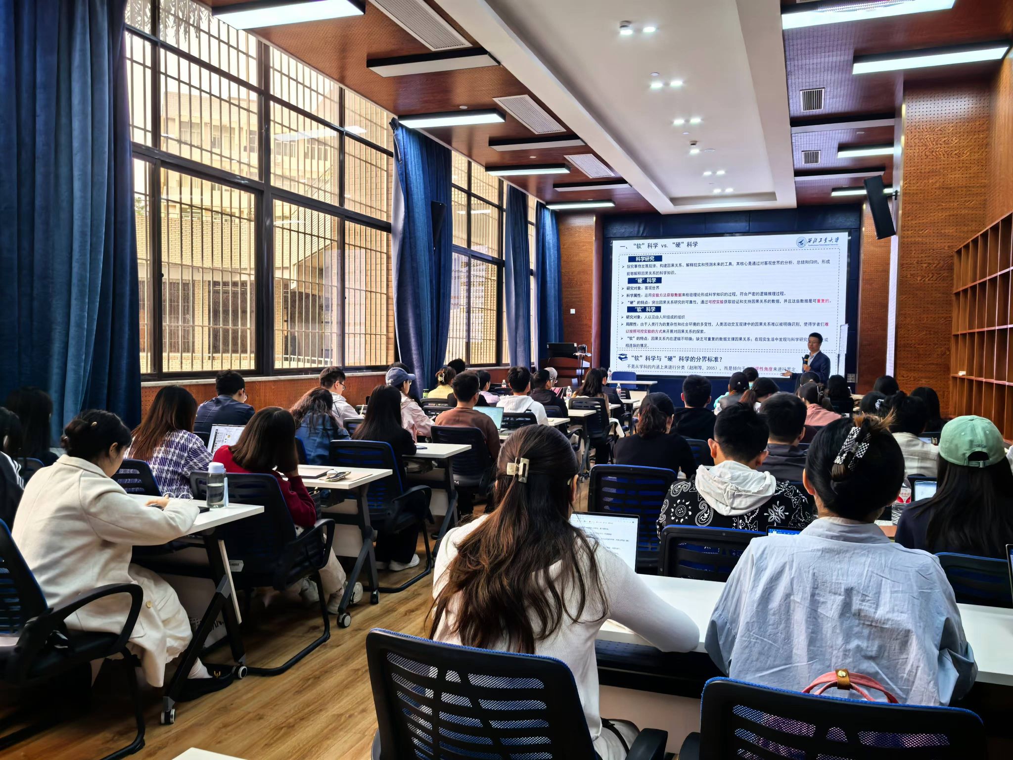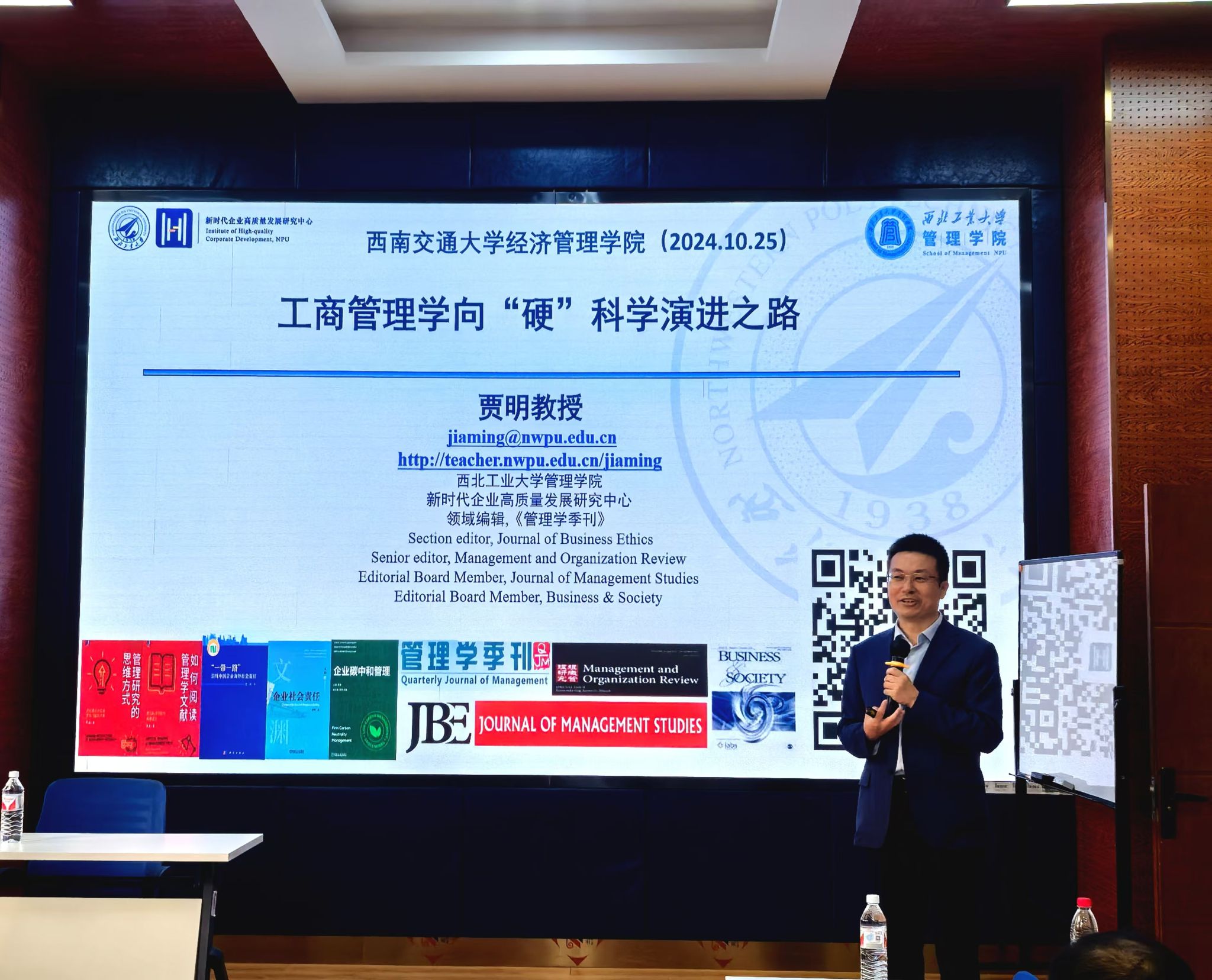 2024年10月25日下午,西北工业大学管理学院贾明教授应邀在九里校区best365网页版登录官方网站为best365官网师生带来了一场聚焦于“工商管理向硬科学演进之路”的学术讲座。本次学术活动由副院长马锋主持,学院部分教师及研究生60余人参加此次活动,副院长马锋介绍贾明教授的学术背景与成就,并代表学院对贾明教授表示欢迎与诚挚的感谢。