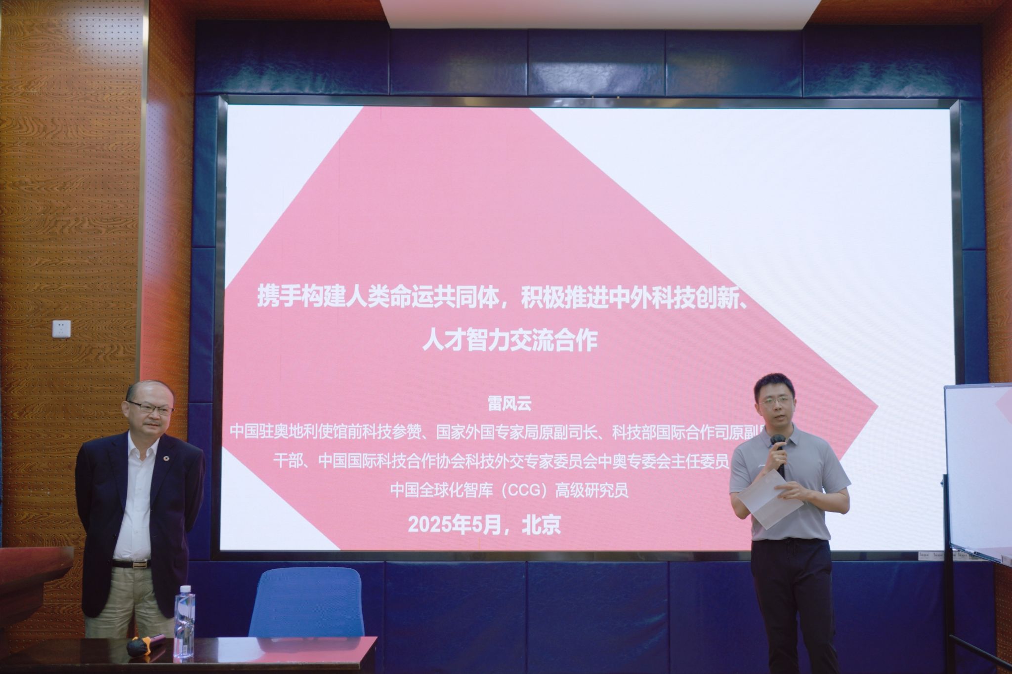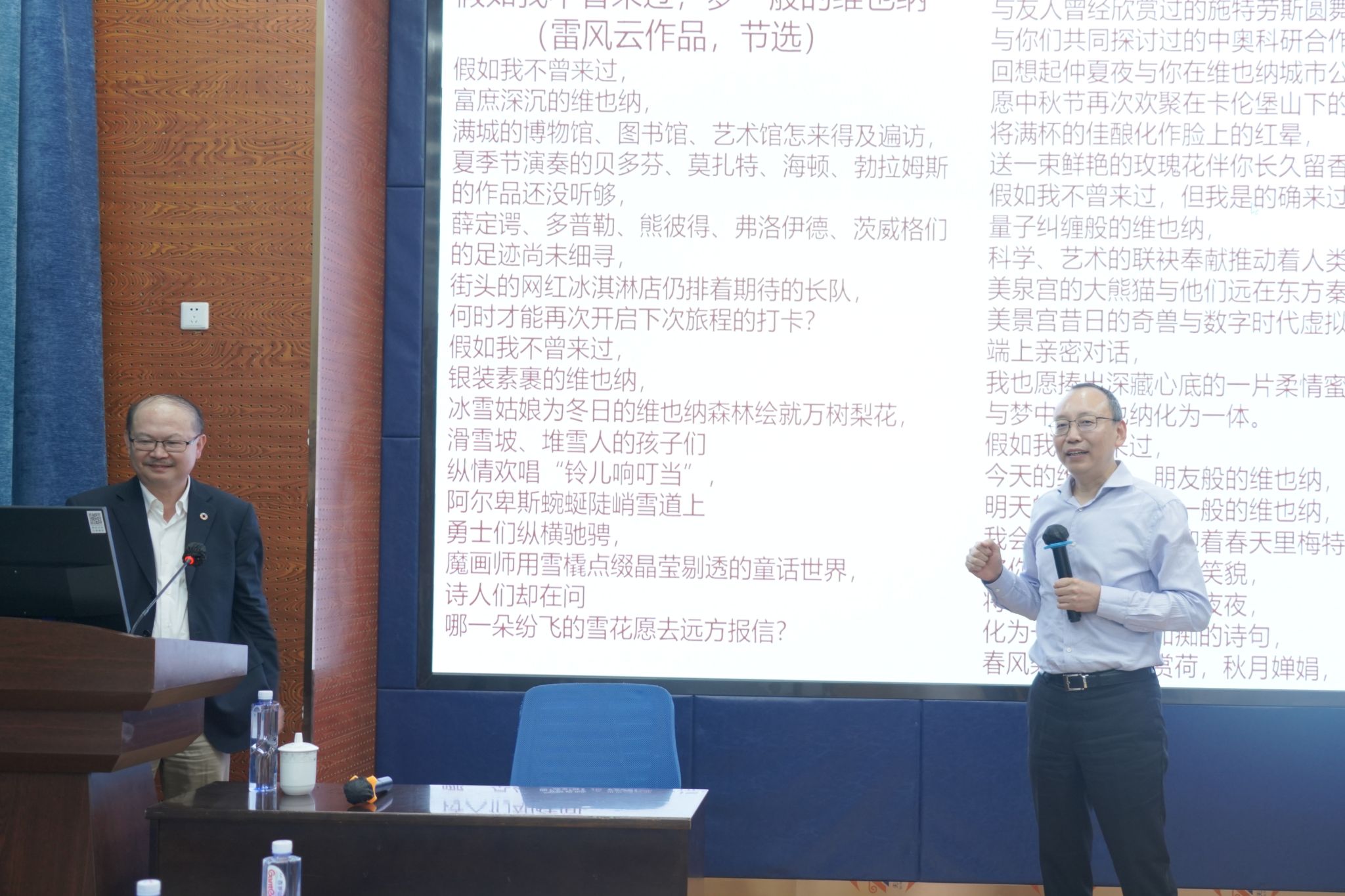随后,雷风云先生展现了中奥在科技创新与人才交流方面的紧密合作。他详细阐述了中奥在医疗健康、人工智能、先进制造领域的合作,重点介绍“中奥中医药防治重大感染性疾病”和“中奥人工智能与先进制造‘一带一路’联合实验室”项目,彰显双方在高科技领域的深度融合与未来合作蓝图。