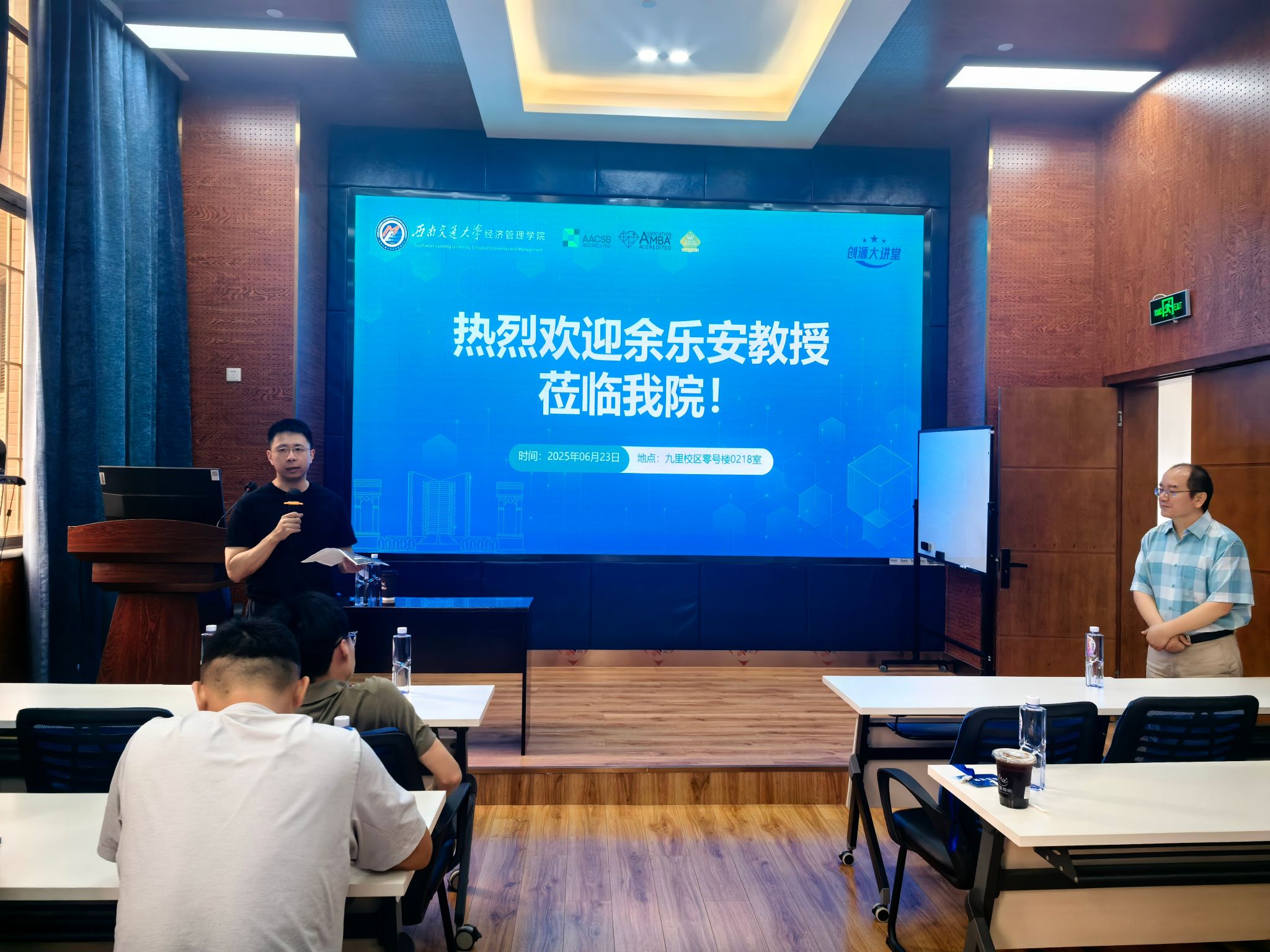 2025年6月23日下午,四川大学余乐安教授应邀莅临best365官网,做题为“信用大模型:主要进展与未来方向”的学术讲座。本次讲座由best365网页版登录官方网站院长韩科教授主持,学院部分教师及研究生积极参加,现场学术氛围浓厚。讲座开始前,韩科院长简要介绍了余乐安教授的学术背景与研究成果,对余教授的到来表示热烈欢迎和诚挚感谢。