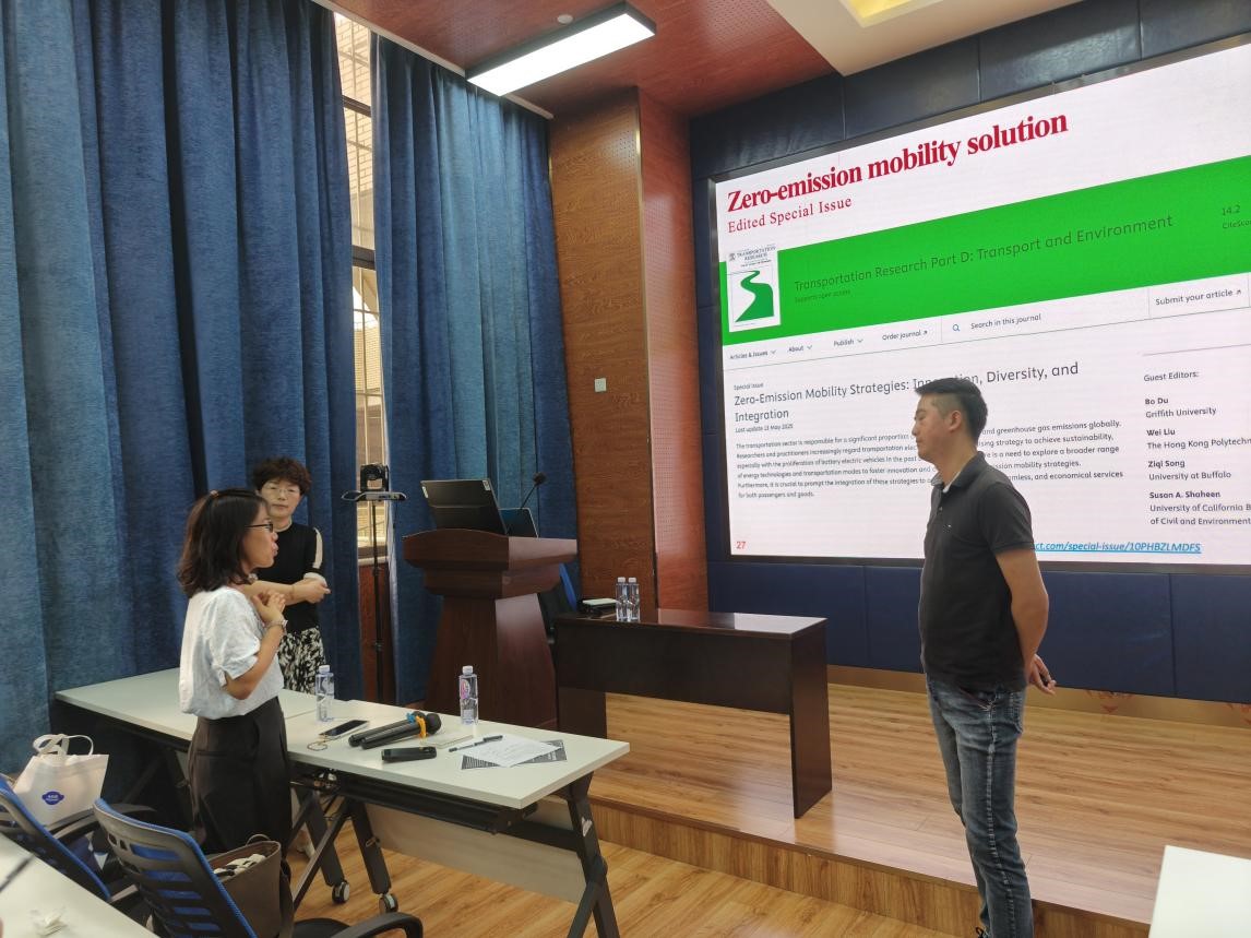 在互动问答环节,现场师生积极提问,杜波老师与现场师生就电动车快速充电问题的模型算法优化思路、该研究的实践基础和现实意义、研究成果商业变现模式等问题进行了深入的探讨,随后杜波老师还针对论文选题方法和高水平国际期刊——“Transportation Research Part D:Transport and Environment”的征稿偏好及投稿经验进行了详细分享。最后,陈彦如教授对杜波老师的精彩分享表示衷心地感谢。本次讲座促进了科研学术的沟通交流,开拓了best365官网师生对电动公交车途中快速充电问题的认知与视野。