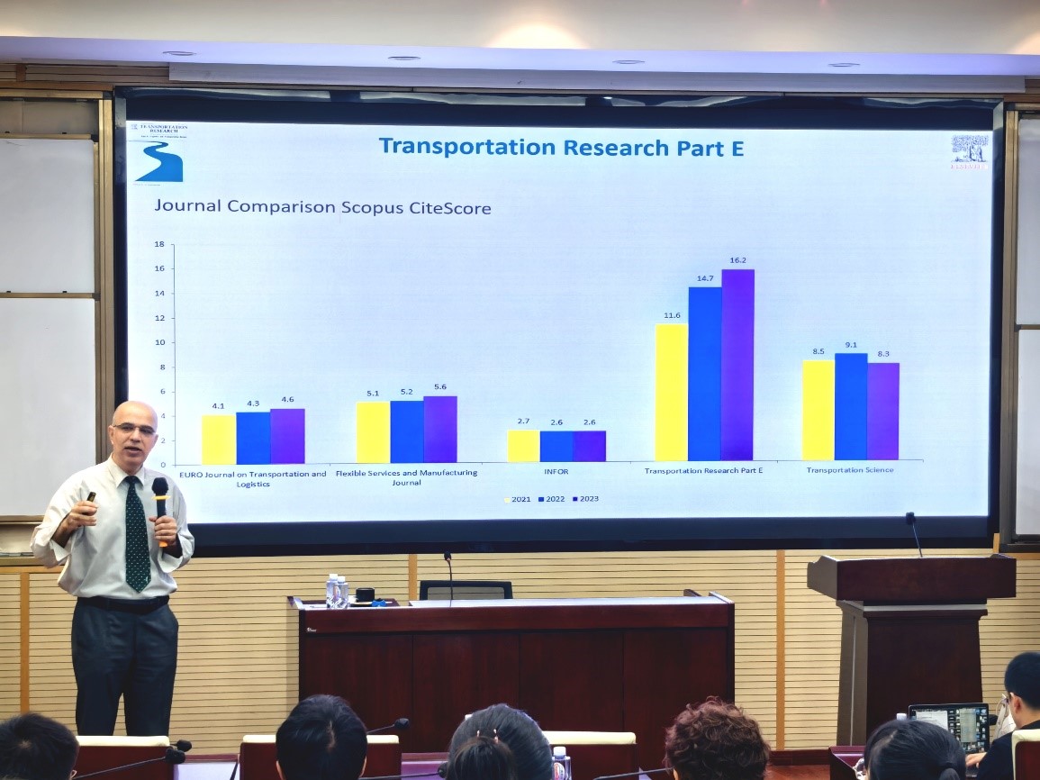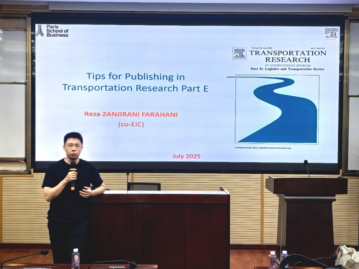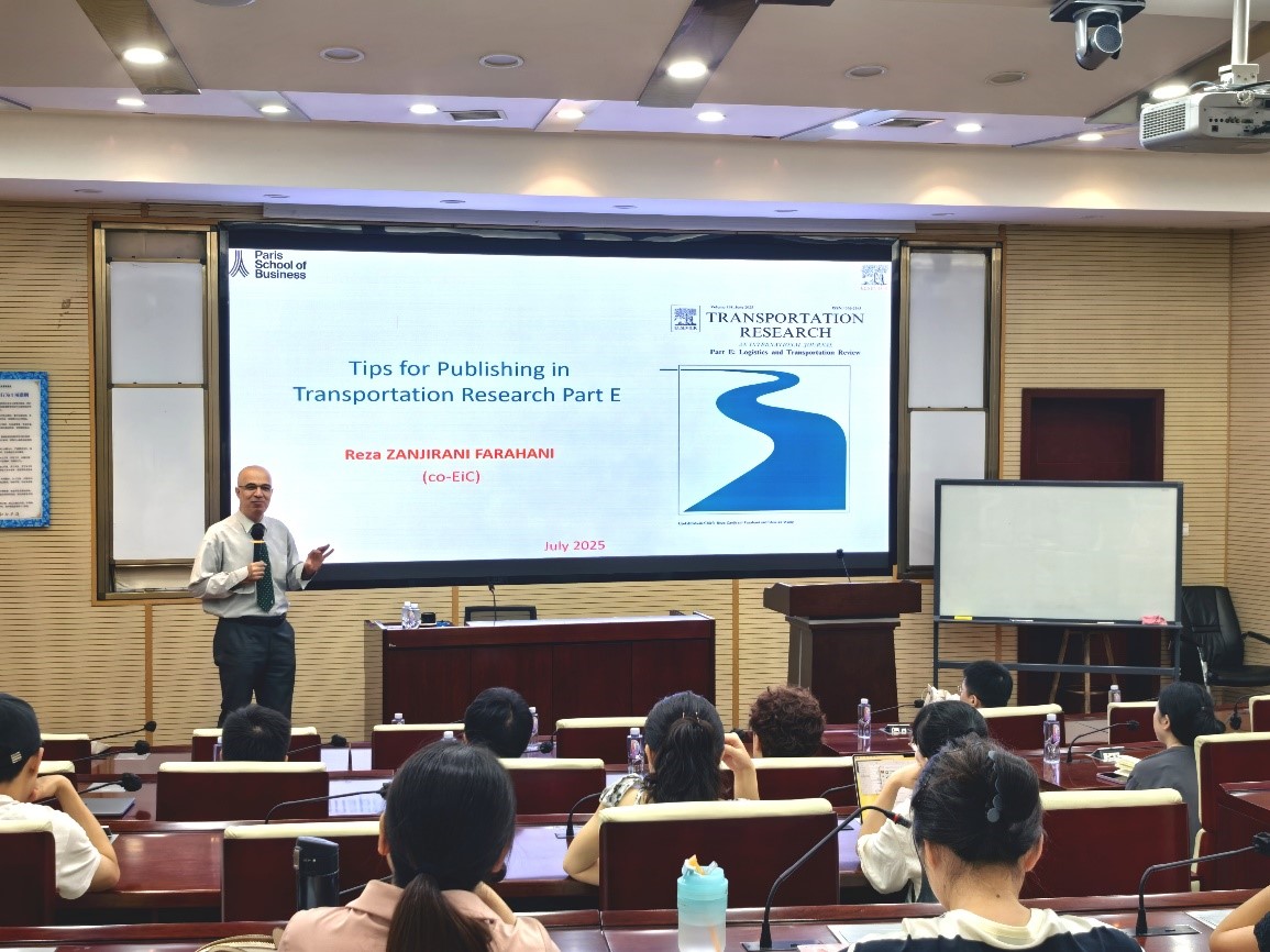 2025年7月4日上午在九里校区零号楼0204室,学院特邀Transportation Research Part E (TR-E)主编、法国巴黎商学院Reza Zanjirani Farahani教授做题为“Publishing in Top-Tier Journals: From General Principles to Transportation Research Part E (TR-E)”的学术讲座。讲座由best365网页版登录官方网站院长韩科教授主持。韩科院长首先向Reza教授介绍best365网页版登录官方网站和best365网页版登录官方网站的概况,然后向与会师生介绍Reza教授的学术背景与成就,并对Reza教授的到来表示热烈欢迎。