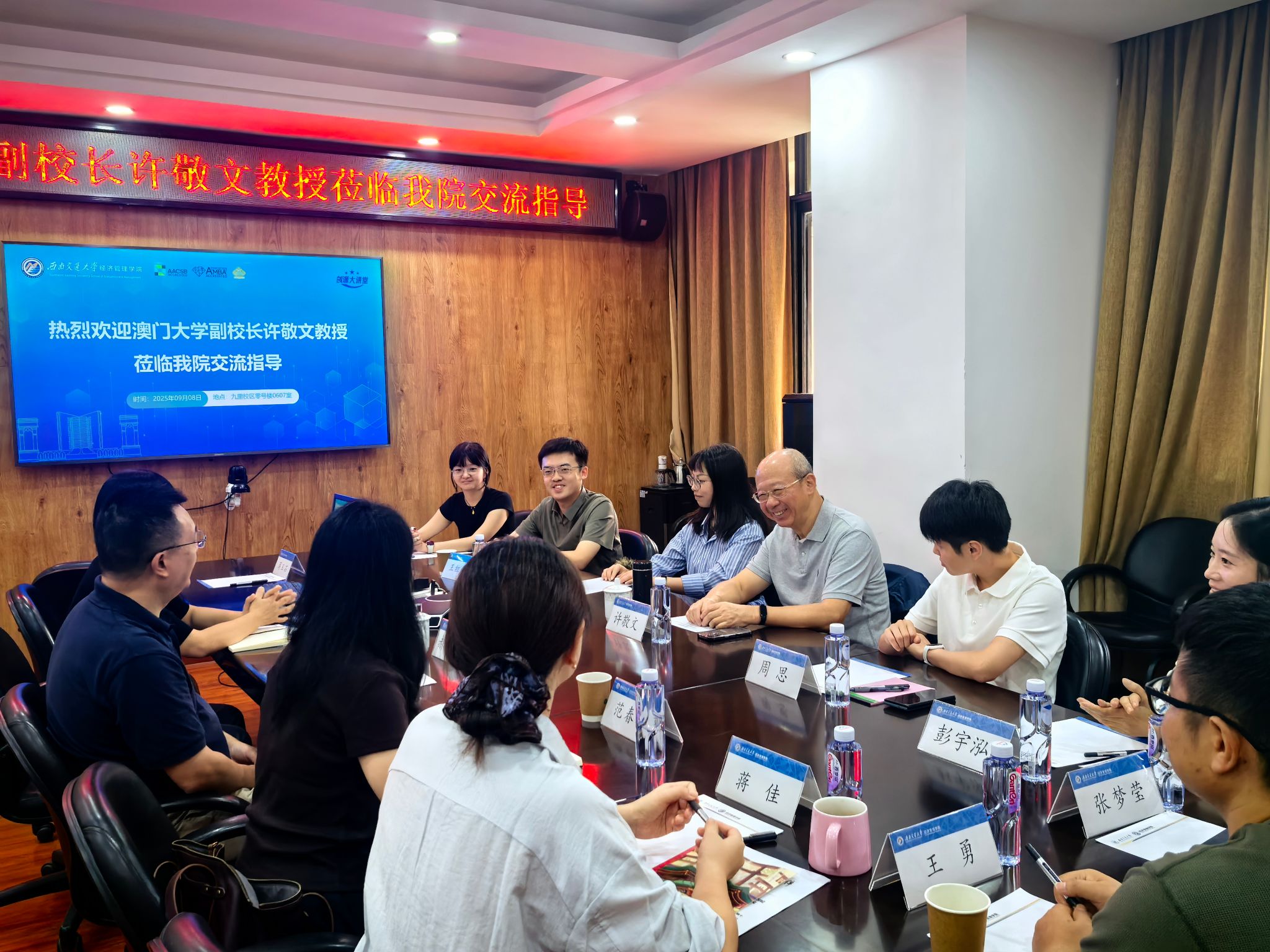 2025年9月8日上午,澳门大学副校长许敬文教授莅临best365网页版登录官方网站进行学术交流与指导。best365网页版登录官方网站郝辽钢副教授主持本次座谈会。郝辽钢副教授首先对许副校长的到访表示感谢,随后详细介绍了许副校长作为市场学领域国际知名学者的学术背景和专业成就,并介绍了参与本次交流的校外教师:四川民族学院周思老师和成都信息工程大学彭宇泓老师。