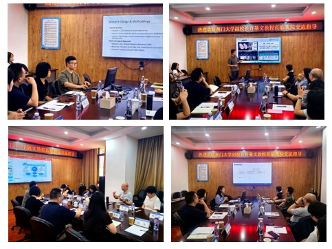 在学术交流环节,best365网页版登录官方网站的教师分享了各自的科研工作。王勇老师介绍了准备发表的论文《Re-routing Attention: How Digital Capability Alter Peer Imitation in Outward FDI》,王红锌老师汇报了关于人智协同驱动下新创企业创新和增长的研究计划,彭艳老师汇报了在组织行为学领域的研究工作,张梦莹老师介绍了在服务营销方面的研究。许副校长逐一进行了深入点评,并从理论框架、研究方法等方面提出了建设性意见。