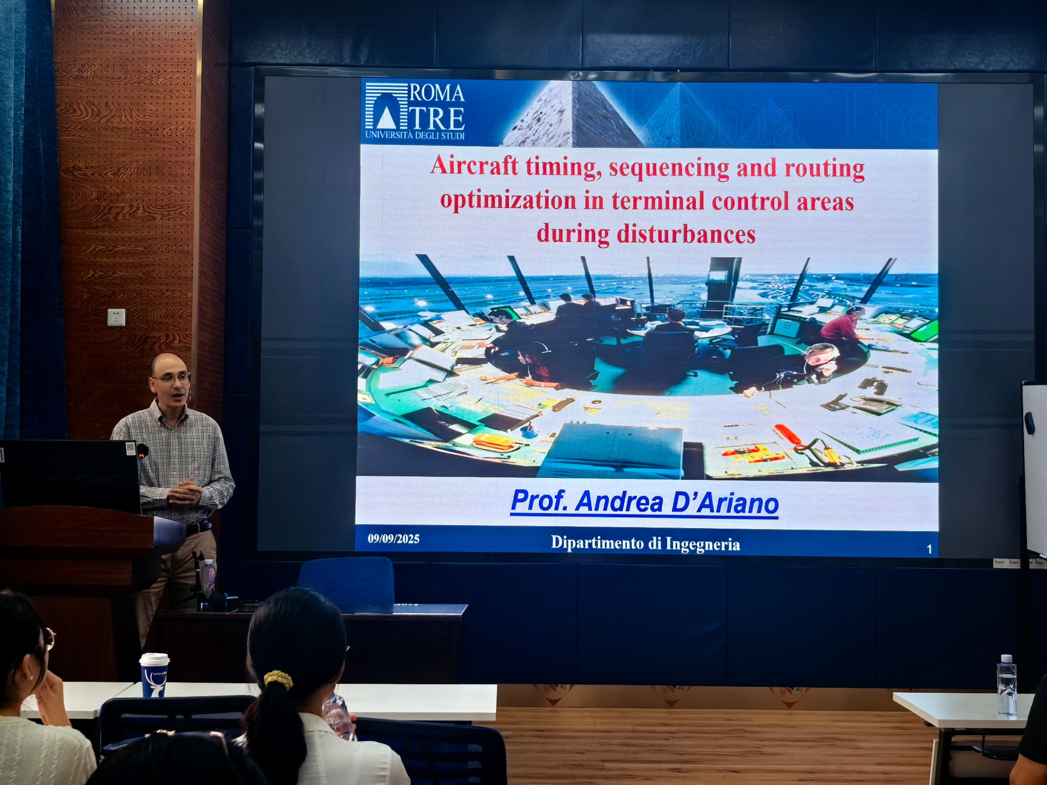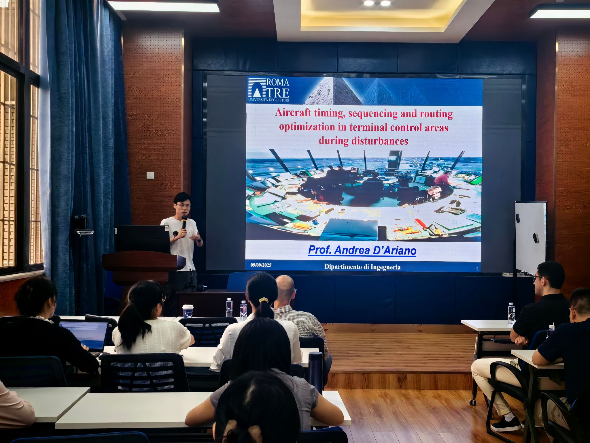 2025年9月9日上午,罗马第三大学Andrea D'Ariano教授应邀为best365官网师生作题为“Aircraft timing, sequencing and routing optimization in terminal control areas during disturbances”的学术讲座。本次讲座由best365网页版登录官方网站副院长马锋教授主持,对Andrea D'Ariano教授的学术背景进行了简要介绍,并代表best365网页版登录官方网站对D'Ariano教授致以热烈欢迎和诚挚感谢。