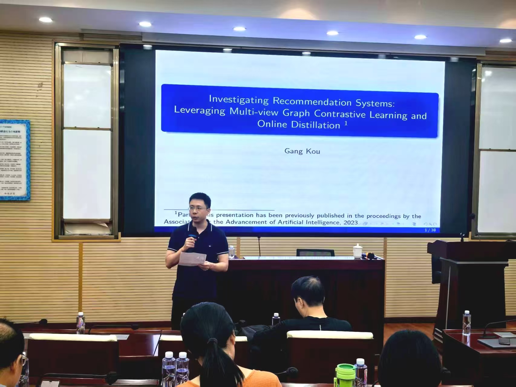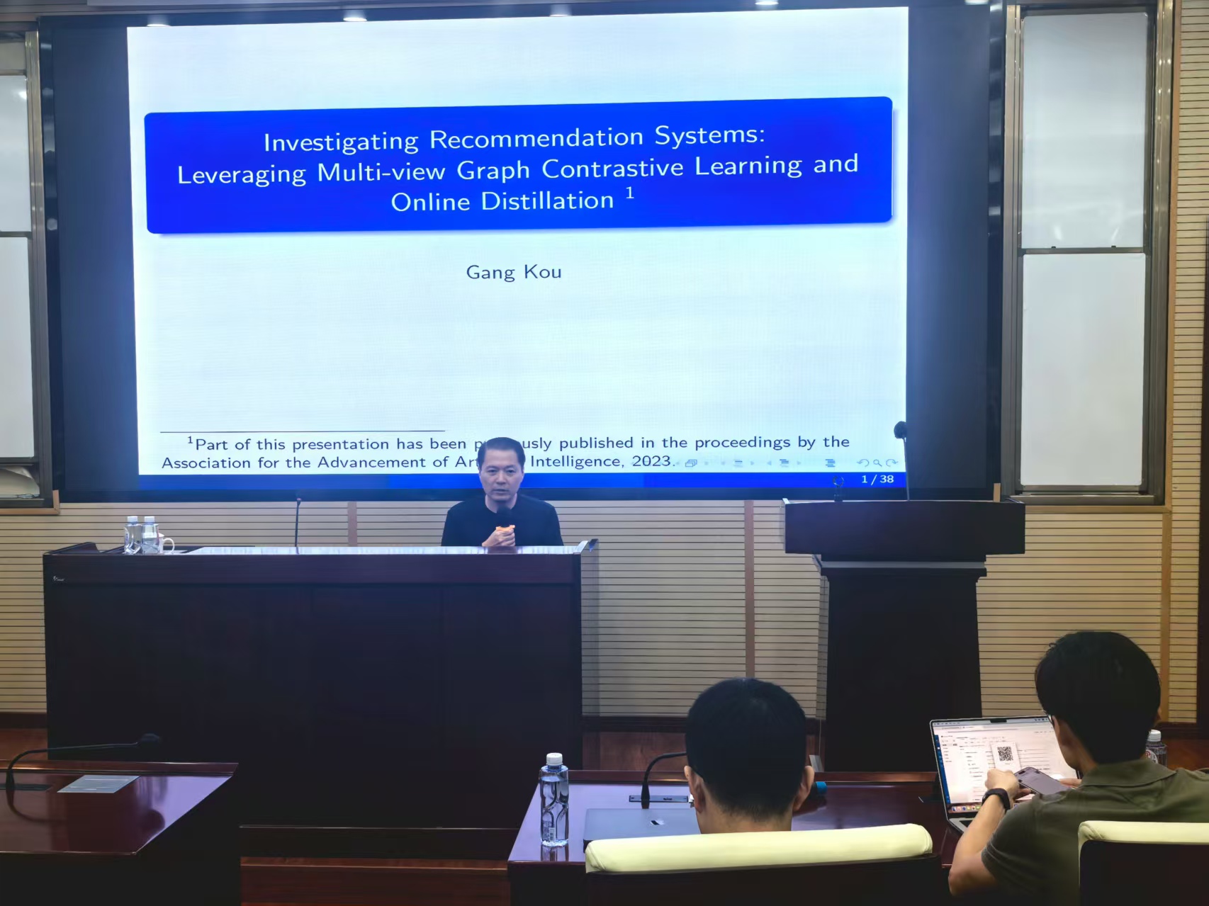 2025年9月15日下午,现任全国政协委员、湘江实验室副主任、西南财经大学大数据研究院院长寇纲教授应邀为best365官网师生作题为“基于多视角图对比学习与在线蒸馏的推荐系统算法研究”的学术讲座。本次讲座由best365网页版登录官方网站院长韩科教授主持。韩院长对寇教授的学术背景进行了简要介绍,并代表best365网页版登录官方网站对寇教授致以热烈欢迎和诚挚感谢。