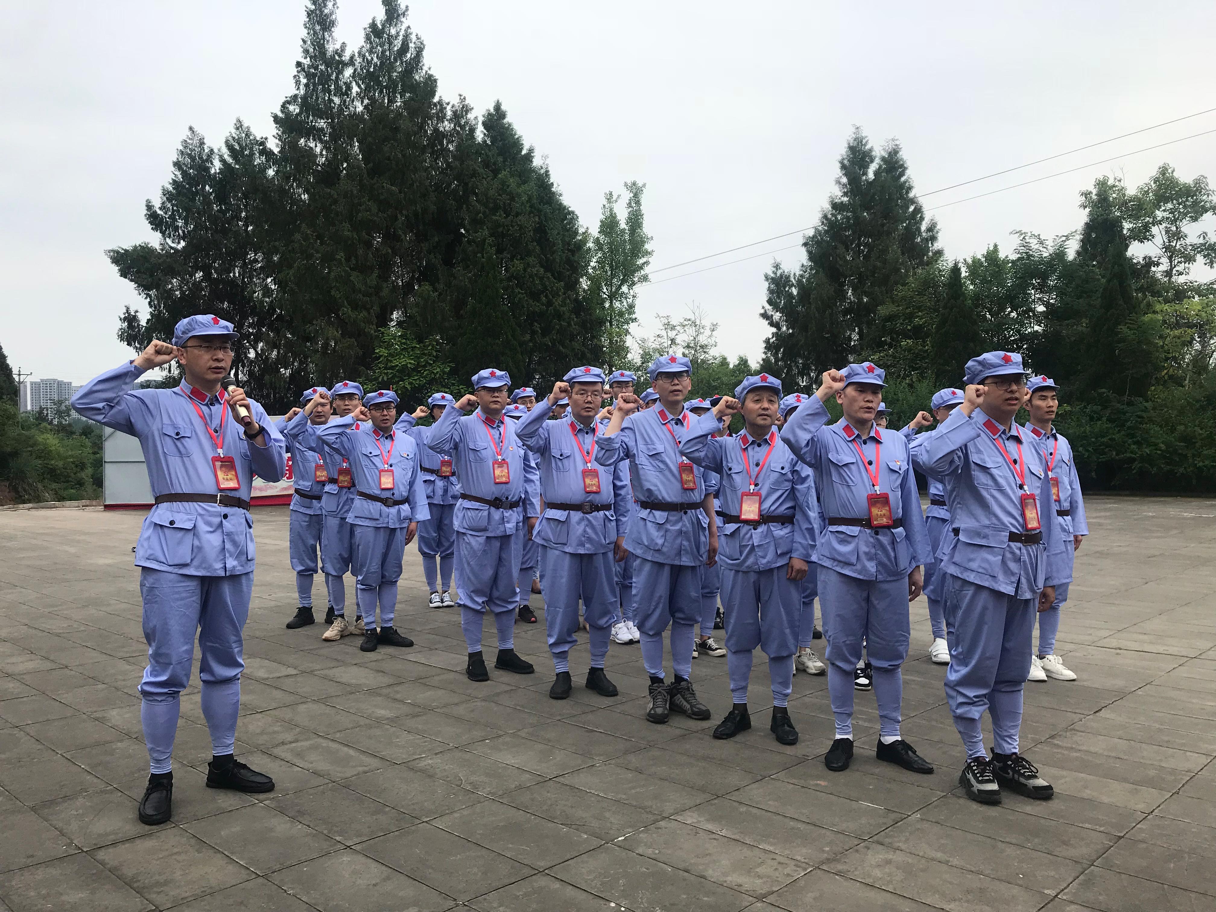 到达阆中红军烈士纪念园后,通过向革命先烈敬献花篮、鞠躬默哀,大家表达了对革命先烈的崇高敬意,致敬伟大的长征精神。在革命烈士纪念碑前,党员同志们面向党旗,庄严举起右拳,重温入党誓词,誓词声声、铿锵有力,每一句话、每一个字,都充满了对中国共产党的坚定信仰。
