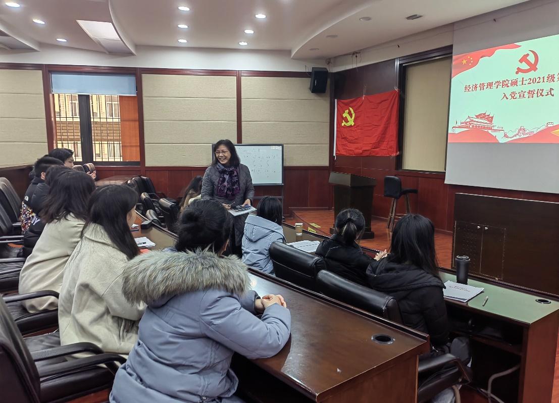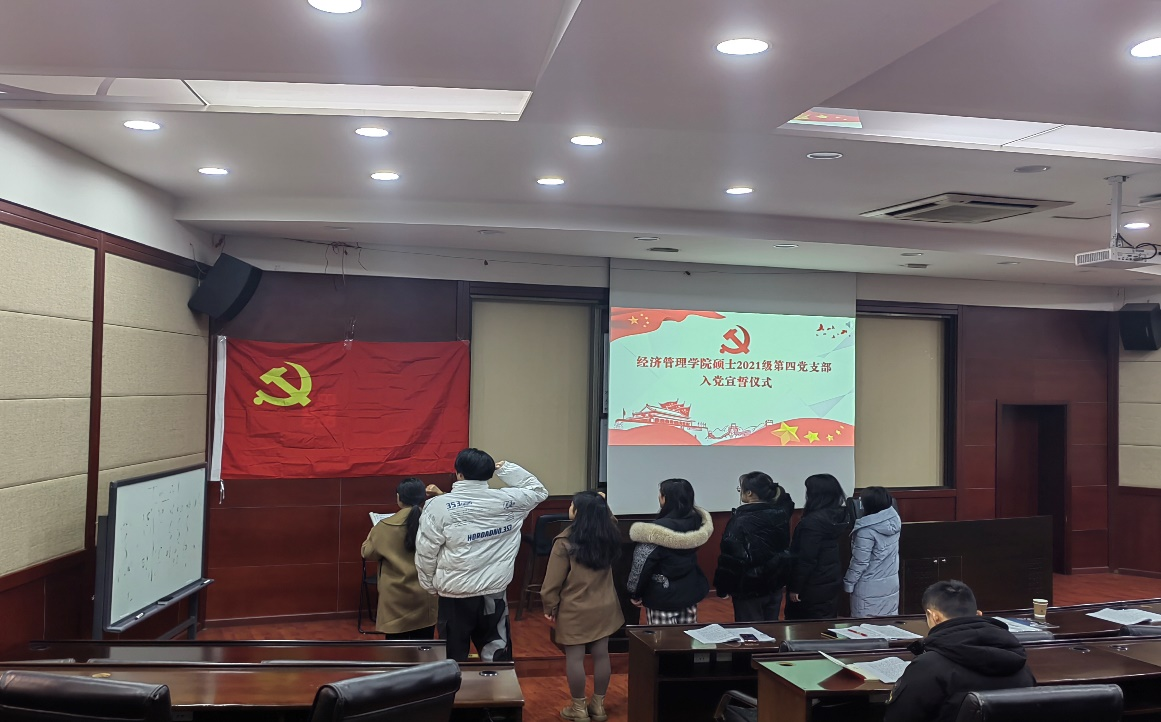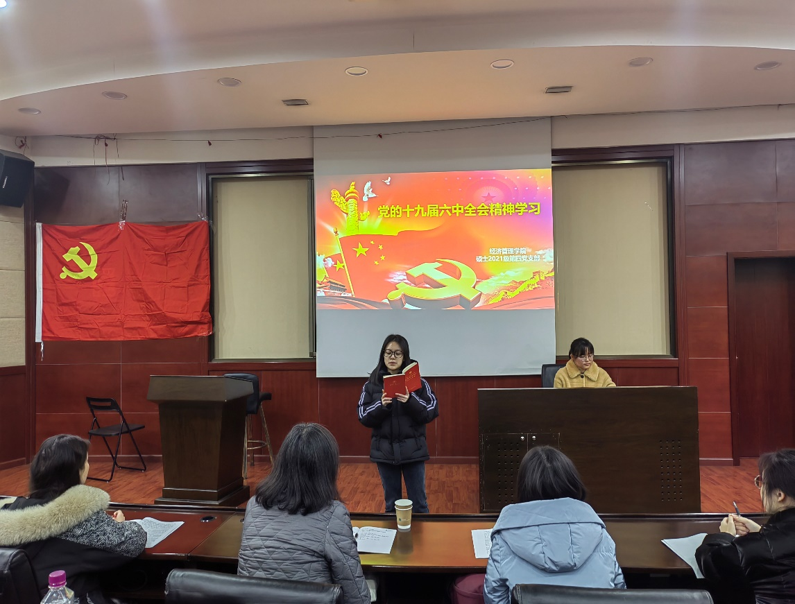 2021年12月30日下午三点在九里校区0224教室,best365网页版登录官方网站硕士2021级第四党支部开展了“党的十九届六中全会精神”的政治学习活动及预备党员入党宣誓仪式。活动由党支部书记吴欣悦主持,校巡视组陈燕灵老师出席指导,党支部共30人全部参加了此次活动。
