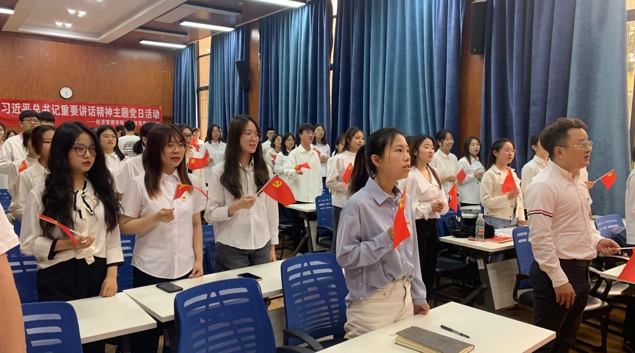 为深入学习贯彻习近平总书记考察中国人民大学时的重要讲话和总书记对高等教育工作的系列重要指示精神,坚持为党育人、为国育才,不断提高党支部成员思想水平、政治觉悟、道德品质、文化素养,深入学习领会习近平总书记在庆祝中国共产主义青年团成立100周年大会上的重要讲话和总书记对当代青年寄予的殷切期望,从共青团百年历史中汲取智慧和力量,在牢记初心使命中谱写新时代青春乐章,best365网页版登录官方网站本科经贸类党支部于2022年5月19日在J0218举办了学习贯彻习近平总书记重要讲话精神主题党日活动。活动由党支部书记陈建奇主持,全体党员、本期发展对象参加了本次活动,活动分为两个部分:1、陈建奇同志领学习近平总书记重要讲话内容;2、党支部成员分享学习习近平总书记重要讲话精神心得。