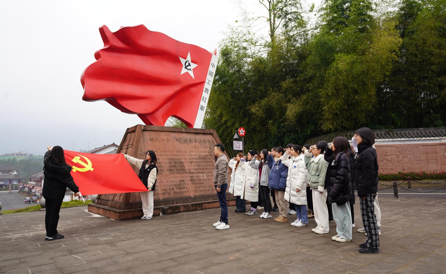 抵达红军村后,大家在党支部书记陈建奇的带领下来到红军广场开展了预备党员宣誓、党员重温入党誓词仪式。面对鲜红的党旗,全体党员举起右手,紧握拳头,庄严宣誓。“我志愿加入中国共产党……”,在豪迈的宣誓声中,党员同志重忆入党初心,增强了爱党爱国爱社会的社会主义情感,让鲜红的底色更加夺目。