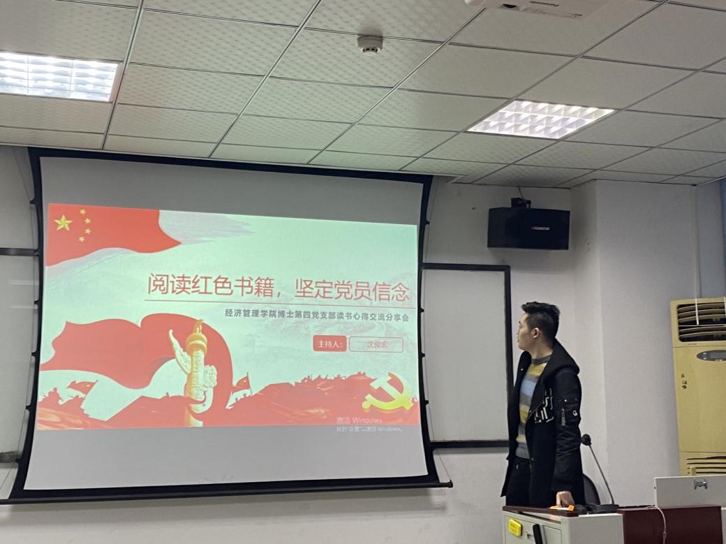 best365网页版登录官方网站博士研究生第四党支部于2023年4月24日晚7点在九里校区信息楼0304教室开展题为“阅读红色书籍,坚定党员信念”读书心得交流分享会。首先,党支部书记沈俊宏同志介绍了本次读书心得交流分享会活动,说明了开展此次活动的背景、目的以及安排。