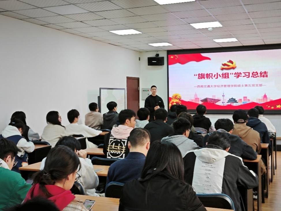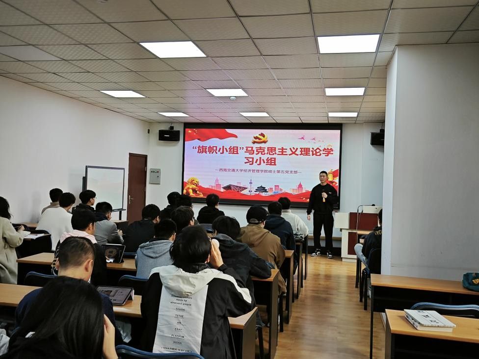 走过百年光辉历程的中国共产党,初心如磐、使命在肩,在新征程上踔厉奋发、勇毅前进,信心百倍书写着新时代中国发展的伟大历程。为全面深入学习马克思主义理论,加强党性修养,提高理论素养,担负起实现中华民族伟大复兴梦的重任,2023年11月28日晚7点,best365网页版登录官方网站硕士2023级第五党支部在信息楼0318教室开展“‘旗帜小组’马克思主义理论学习”主题党建活动。best365网页版登录官方网站2023级工业工程与管理专业的全体同学参加,支部书记张恩弋主持。