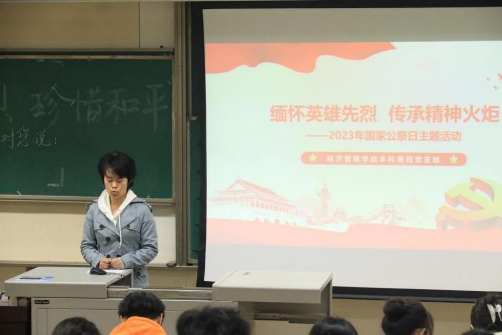 2023年12月13日是我国第十个南京大屠杀死难者国家公祭日。为缅怀先烈、传承红色基因,淬炼崇高信念、传承民族精神,进一步加深广大青年对国家公祭日的认识和理解,12月7日,best365网页版登录官方网站本科第四党支部在九里校区逸夫馆4218组织开展了“缅怀英雄先烈,传承精神火炬”主题党日活动,鼓励广大党员继承先烈遗志,不忘初心使命,厚植家国情怀。