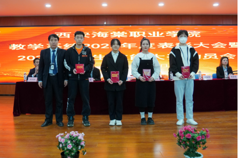 2023年4月4日下午,beat365手机版官方网站教学系统2022年度表彰大会暨2023年学生技能大赛动员会在学术报告厅隆重举行。教学副院长杨国峰,教务处处长张建利,招生就业处处长吴刚,各教学单位主管领导、全体教师及学生代表出席此次大会。大会由教务科科长费莎主持。