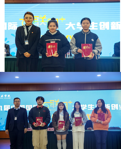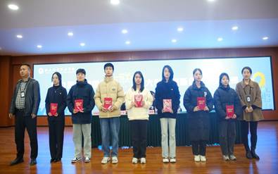接下来,与会领导依次给受到表彰的师生进行了颁奖。其中,2023年秋季学期“说专业”比赛获奖教师6人;第九届互联网+大学生创新创业大赛校赛获奖项目,一等奖2项、二等奖5项、三等奖7项、优秀奖10项、优秀组织奖1个;2023年“外研杯•国才杯”英语挑战赛校赛获奖学生12人。