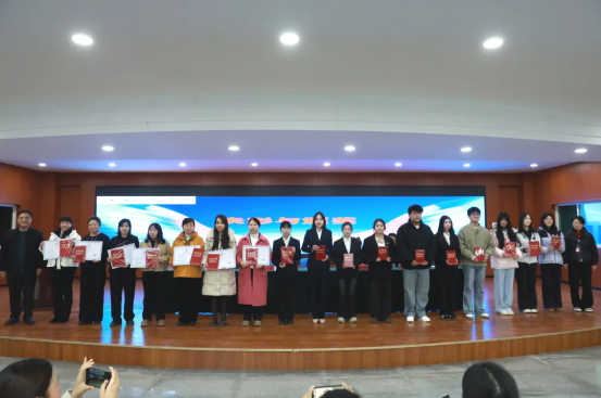 仪式现场,教务处范红处长宣读2024-2025年度各类大赛表彰决定,清晰梳理学院学子在职业技能大赛、中国国际大学生创新大赛中的优异成果。与会领导为获奖师生代表逐一颁奖,掌声与喝彩声交织,定格下荣誉时刻。