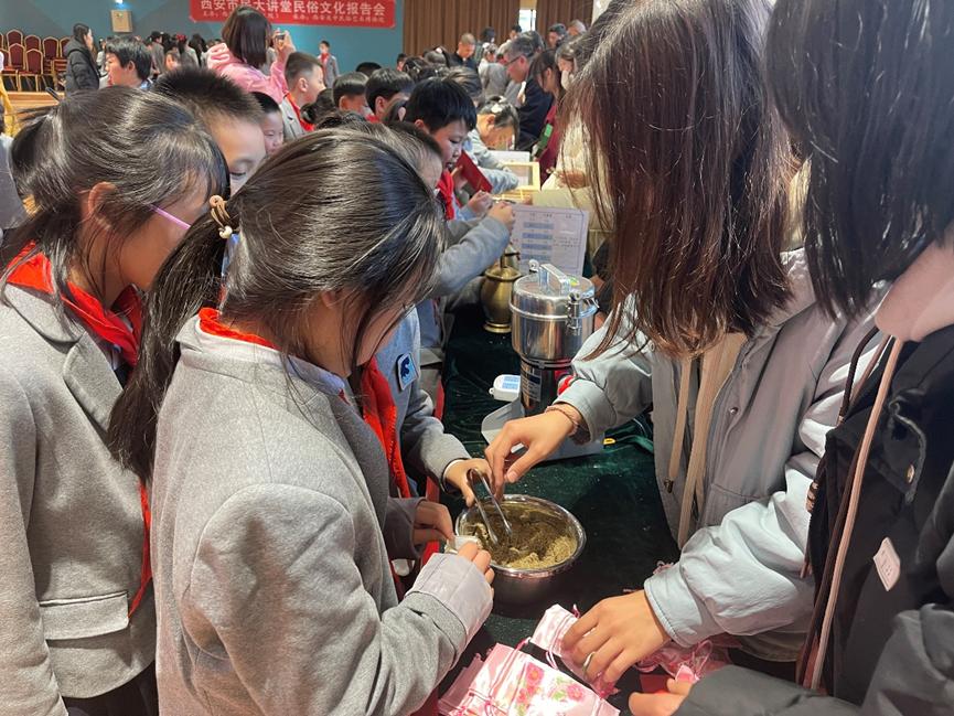 活动中,同学们了解中国历代名医和养生文化体系;细细分辨20余种不同的中药实物;体验抓药的过程,感受中药香囊的调配过程。在了解药食同源的过程中,同学们意识到原来酸梅汤、秋梨膏、八珍糕、阿胶糕等好吃的食物,除了提供人体需要的营养外,还有食补的作用。