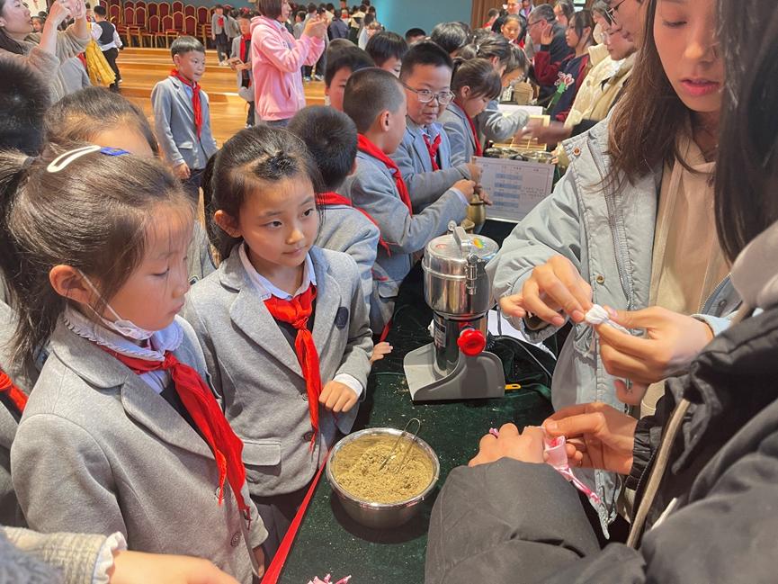 从中药的种植到采摘是如何制作的?药丸是怎么做出来的?不同形状的药材如何制成相似的粉末……同学们还在博物馆中作人员的指导下一起了解、体验了中药的制作过程,感受着中药的独特魅力。