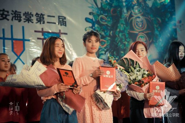 晚会结束时,海棠集团颂海公司总经理鹿程发表了热情洋溢的演讲,她给大家讲述了关于创业的经验和方法,进一步激发了学生们对美的追求和创业的热情。海棠公司总监熊建林还向学生们开出了共同创业的优惠大单,赢得和学生们的阵阵掌声。海棠集团秘书部何建华秘书长还亲自为获奖作品颁发了证书。