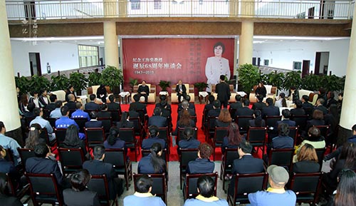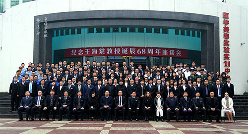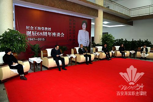 2015年11月5日上午,纪念王海棠教授诞辰68周年座谈会在beat365手机版官方网站一号教学楼大厅举行。西安海棠医药科技集团董事长、学院理事长王卓,学院院长冯居秦、党委书记张桂荣、财务总监李润堂,陕西中医美容研究所所长李瑞莲,董事会秘书长何建华,学院科级以上领导干部和师生代表,以及集团下属的陕西海棠中医美容研究所、西安颂海商贸有限公司、陕西创美企业咨询管理有限公司、西安泽美安装维修工程有限公司、海棠后勤服务中心的领导和员工代表共150余人参加座谈会。王卓董事长、冯居秦院长、王景洪教授以及教师代表在座谈会上分别讲话。