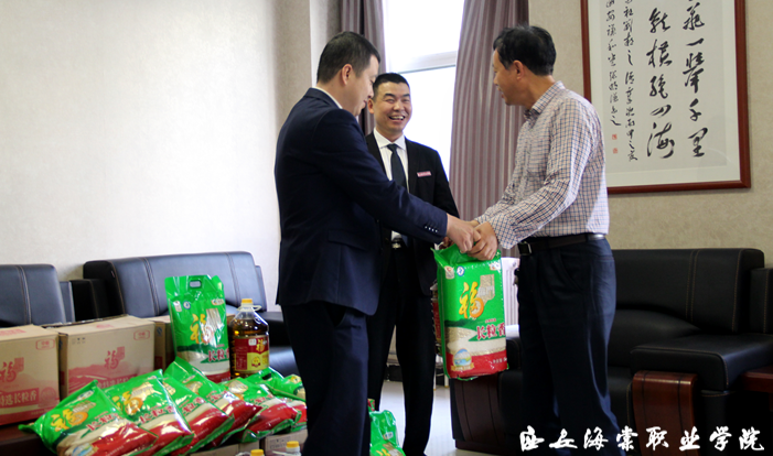 工会人员向工勤人员发放大米、食用油等慰问品。职工们纷纷表示,将继续努力工作,用实际行动回报学校。