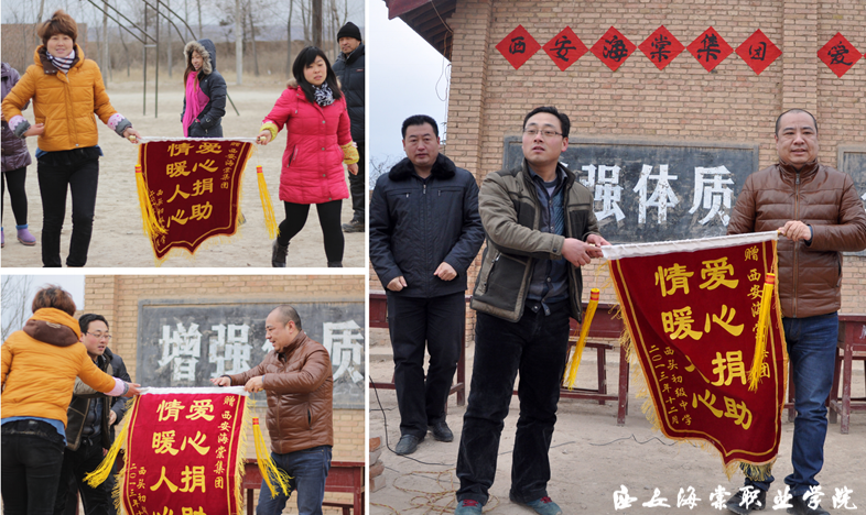 2013年12月26日,王卓董事长与海棠学院相关教职工一行十余人前往位于蒲城县洛滨镇最偏远的中学——西头初级中学进行慰问,为那里的学生们送去了120套棉衣、40多床被褥、200余套学习用具和过冬物品。