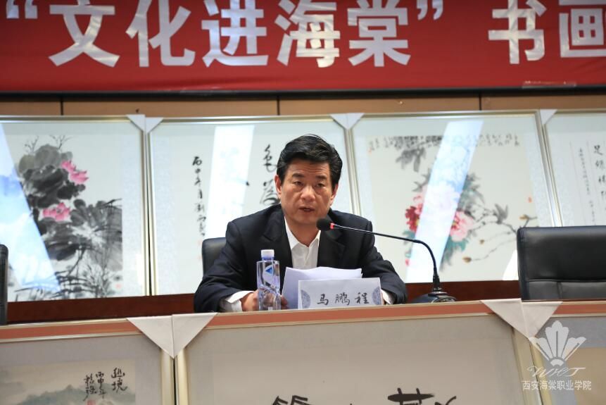 马鹏程秘书长在讲话中介绍了中国农工民主党陕西省委员会的公益项目及对教育事业的贡献,并对大学生多了解传统文化、学习艺术寄予厚望。他指出,“文化进校园”的书画作品活动,将为海棠学院的校园文化建设和弘扬祖国传统文化、讲好中国故事、传递正能量等活动起到积极作用。