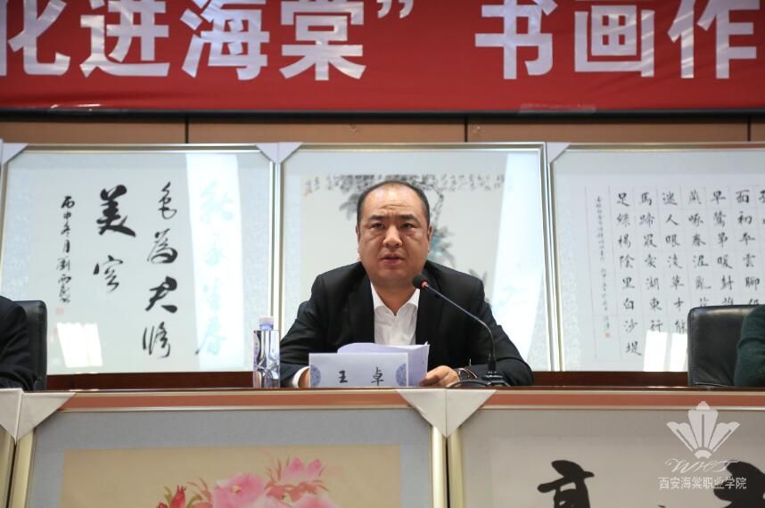 仪式上,王卓理事长作重要讲话。他回顾了自己加入农工民主党以来在农工党陕西省委会的带领下参与的公益事业历程,并表示将不忘感恩,继续带领海棠人投身公益。他指出,农工党陕西省委会、陕西省世华大爱教育基金、陕西省慈善协会带着传统文化走进海棠学院是一次情系教育、热心公益的善举,“文化进海棠”书画捐赠活动为beat365手机版官方网站的师生们带来一场生动的中华传统文化盛宴。作为“文化进校园”的受益者,beat365手机版官方网站将整合资源,彰显特色。在传承文化的基础上,结合科学先进的教学思路和现代科技,紧跟行业发展趋势,培养符合市场要求的新时期大学生。他要求广大学生们勤奋学习、提升专业技能,毕业后成为对国家、行业、社会的有用之才。