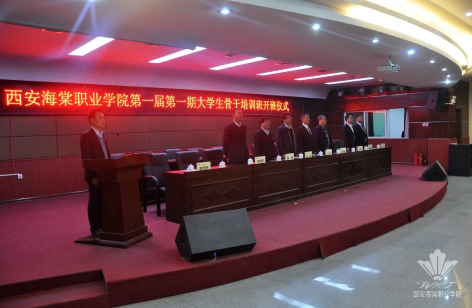 4月10日下午,我院首届大学生骨干培训班开班仪式在学术报告厅举行。我院党委副书记、副院长吕博、党政办主任郭鹏、各处室领导出席本次大会,第一期大学生骨干培训班各组组长及培训学员共计400余人参加了此次开班活动。仪式由学生处处长赵刚刚主持。