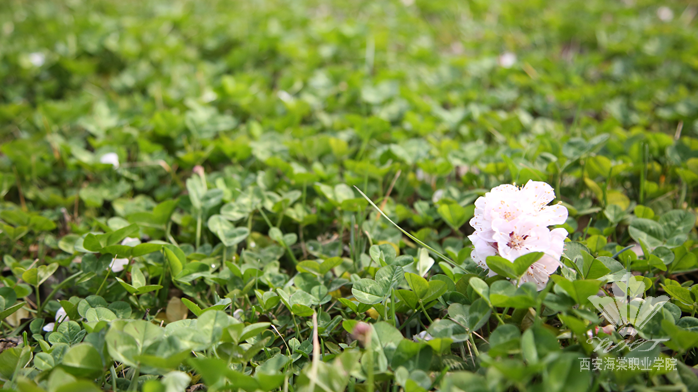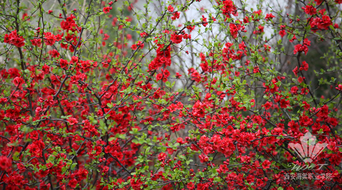 我的海棠,正张开她的眼睛,望着她的学子们,为她穿上一件件美丽的华衣。