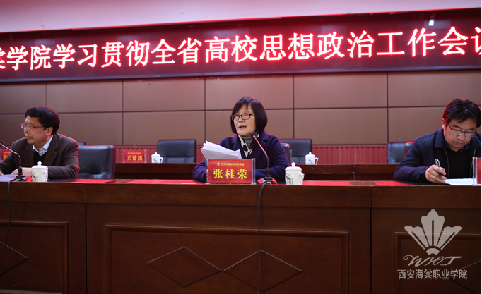 会上,张桂荣书记传达了全省高校思想政治工作会议相关情况及领导讲话精神。她指出,全省高校思想政治工作会议规格高、规模大,对高校进一步加强和改进思想政治工作具有重要意义,是贯彻落实全国高校思想政治工作会议精神和习近平总书记重要讲话精神的具体部署和进一步深化。省委书记娄勤俭指出,要牢牢把握社会主义办学方向这个原则立场、立德树人这个根本任务、改革创新这个方式方法、党的领导这个根本保障,在高校思想政治工作中要突出“四个相统一”,聚焦“四个正确认识”,强化“四个意识”,加强党的领导提升高校政治工作科学化水平。省委副书记毛万春结合我省高校实际,部署了当前和今后一个时期高校思想政治工作的重点任务,要求高校要着力抓好“八件事”。