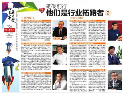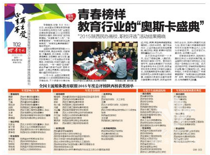 近日,由全国主流媒体教育联盟及华商报社共同主办的“全国主流媒体教育联盟2015总评榜陕西榜民办高校、职校评选”活动结果揭晓。“年度影响力人物”、“年度青春榜样”、“年度创新创业教育典范”、“年度学生最满意高校”等奖项出炉。