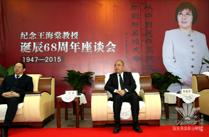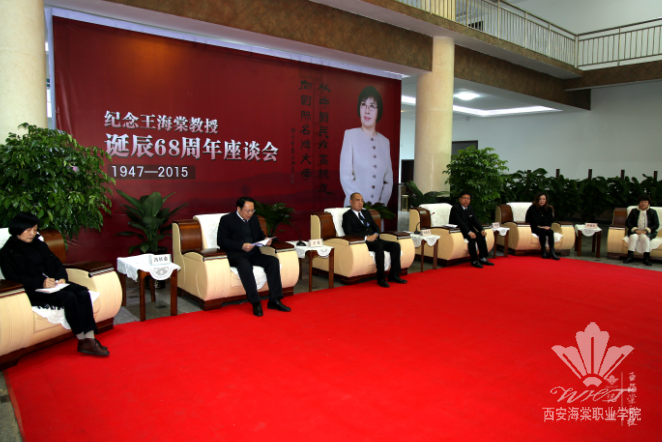 2015年11月5日上午,纪念王海棠教授诞辰68周年座谈会在我院一号教学楼大厅举行。西安海棠医药科技集团董事长、学院理事长王卓,董事会秘书长何建华,学院院长冯居秦、党委书记张桂荣、财务总监李润堂,陕西中医美容研究所所长李瑞莲,学院科级以上干部和师生代表以及集团下属的陕西海棠中医美容研究所、西安颂海商贸有限公司、陕西创美企业咨询管理有限公司、西安泽美安装维修工程有限公司、海棠后勤服务中心的领导和员工代表共150余人参加座谈会。会议由何建华秘书长主持。