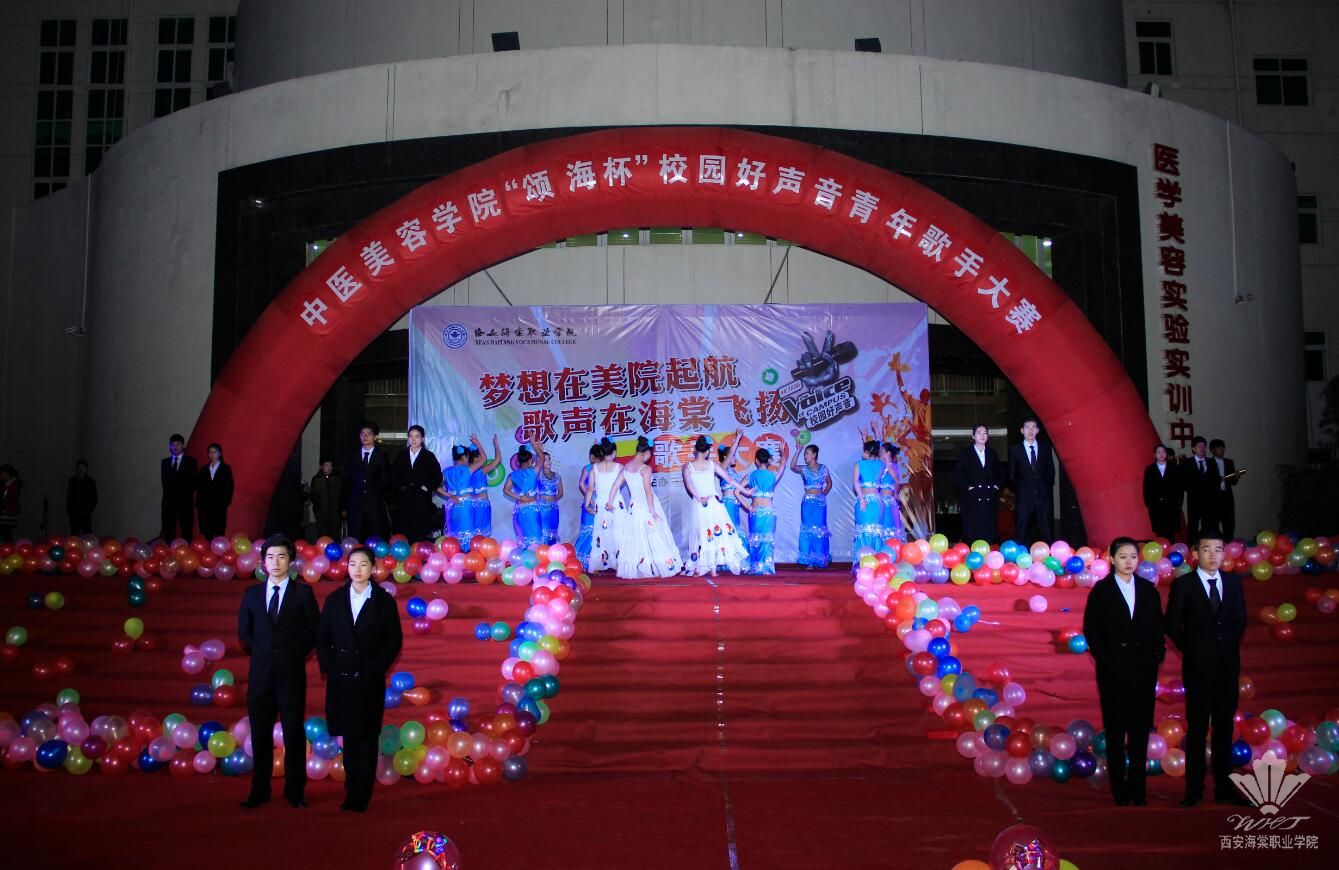 2015年11月26日晚,由我院中医美容学院主办的主题为“梦想在美院启航,歌声在海棠飞扬”的青年歌手大赛在1号教学楼前隆重举办。本次活动由海棠集团颂海公司赞助。出席本次大赛的领导及嘉宾有:颂海公司总经理鹿程,中医美容学院院长李锋利,副院长崔晓娟、马超,院团委书记石博等。全院师生共同参与这场视觉与听觉的盛宴。