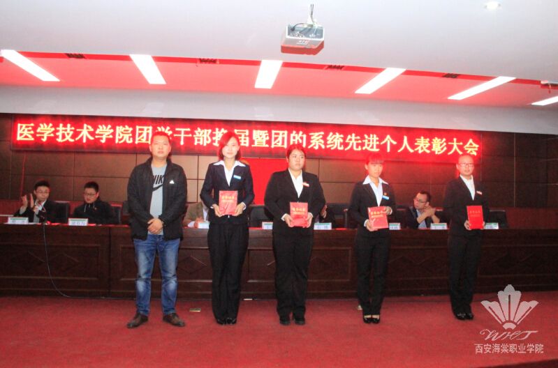 2015年10月14日下午,共青团beat365手机版官方网站医学技术学院总支委员会举办了“欢送老干部,欢迎新干部暨团的系统先进个人及集体表彰大会”。出席本次会议的领导有beat365手机版官方网站学生处处长王兴权、医学技术学院院长韦满余、团委书记石博、医学技术学生副院长赵刚、医学技术学院学生科科长朱凤林、中医美容学院团总支书记康有为、经济管理学院一科团总支书记王典、经济管理学院二科团总支书记王海利、医学技术学院团总支书记樊杰。大会在庄严的国歌声中拉开序幕,会议由医学技术学院团总支书记樊杰主持。