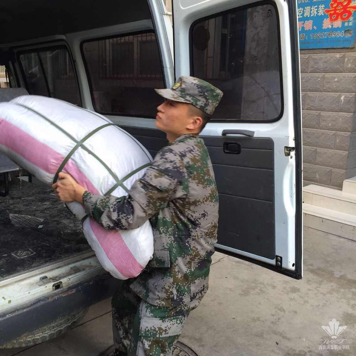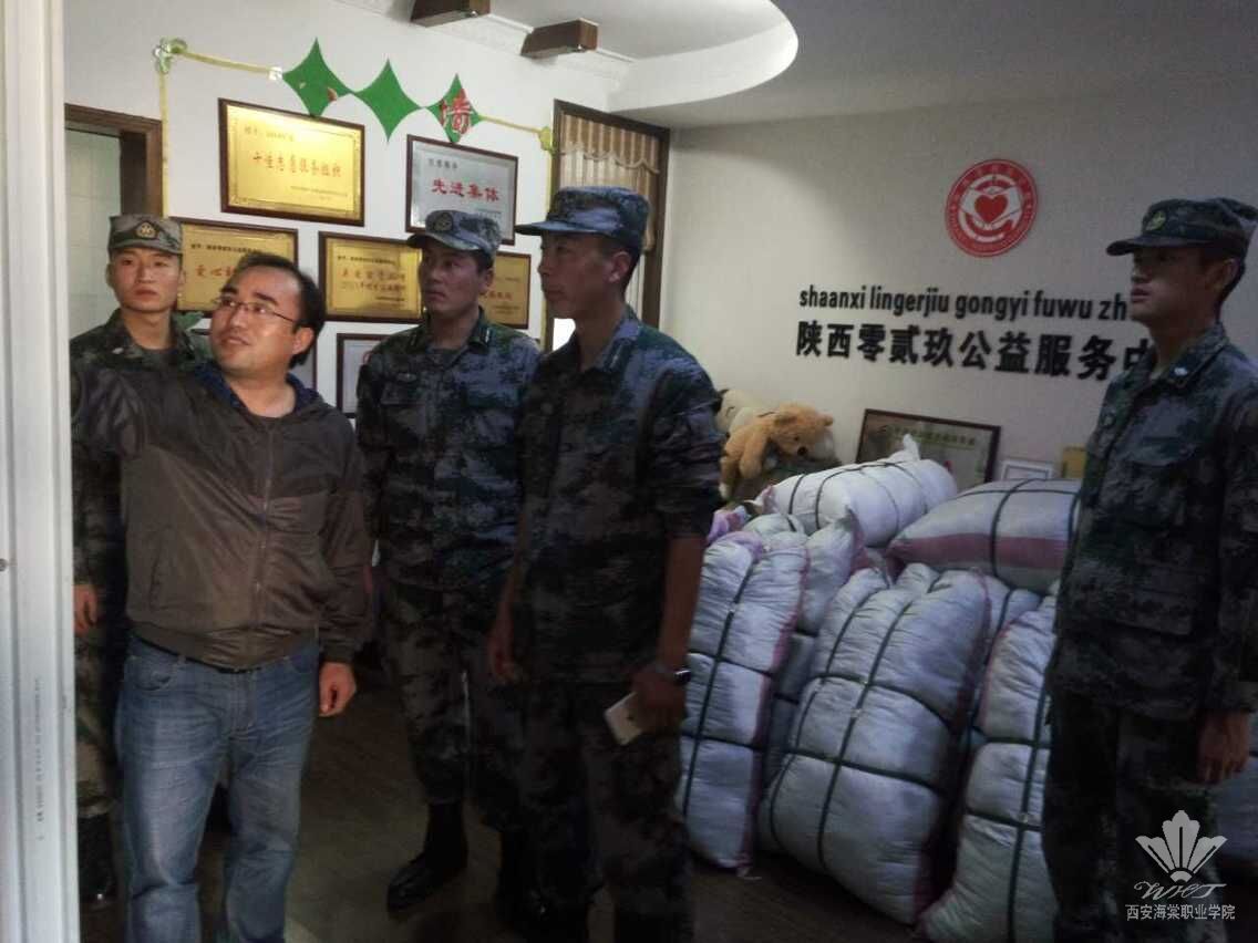 10月27日下午,西安海棠学院的预备役官兵们来到了陕西零贰玖公益服务中心,将他们准备已久的14大包2000余件衣物捐赠给了中心。