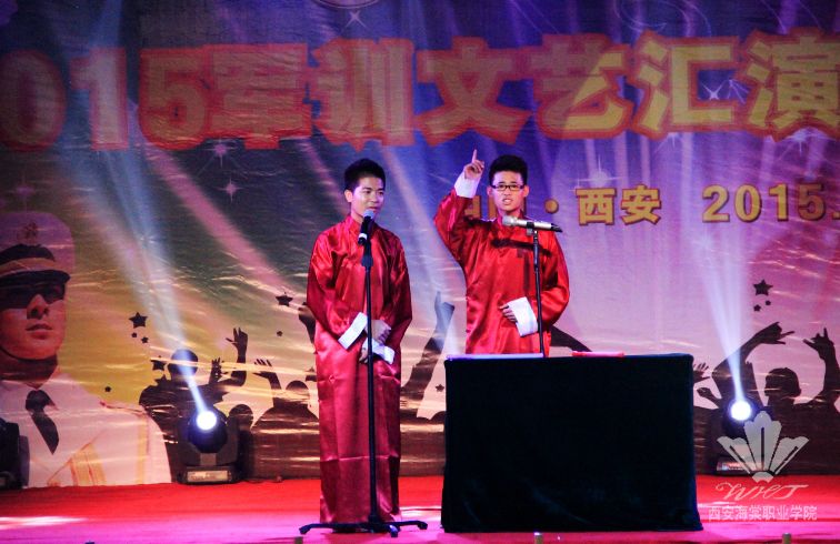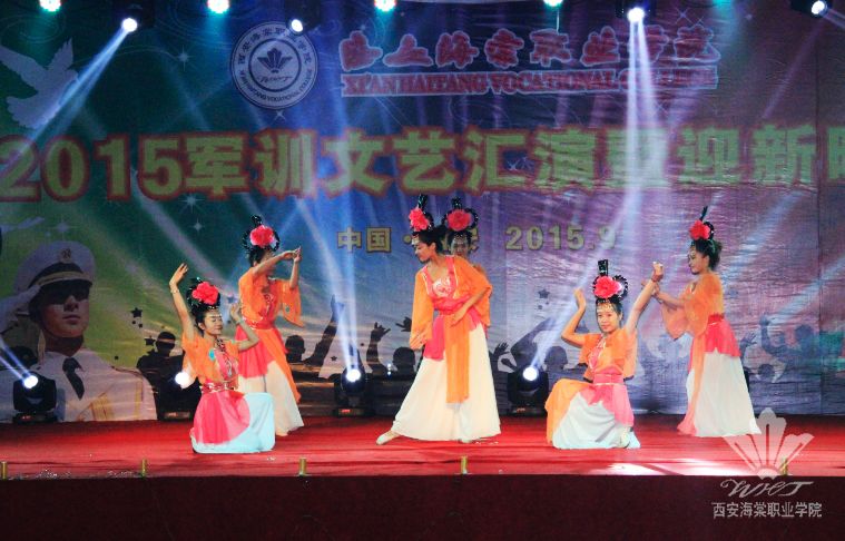 2015年9月8日晚,beat365手机版官方网站足球场上星光点点、欢笑连连, 2015年军训文艺汇演暨迎新晚会在这里隆重上演。党委书记张桂荣,院长冯居秦,副院长吕博、许春海、赵景利,技师学院院长宋党助等学院领导,以及狄寨街办副书记、纪委书记孟林,街办副主任王有坤等街办领导观看演出,与现场4000多名师生共同领略我院新生的青春风采。