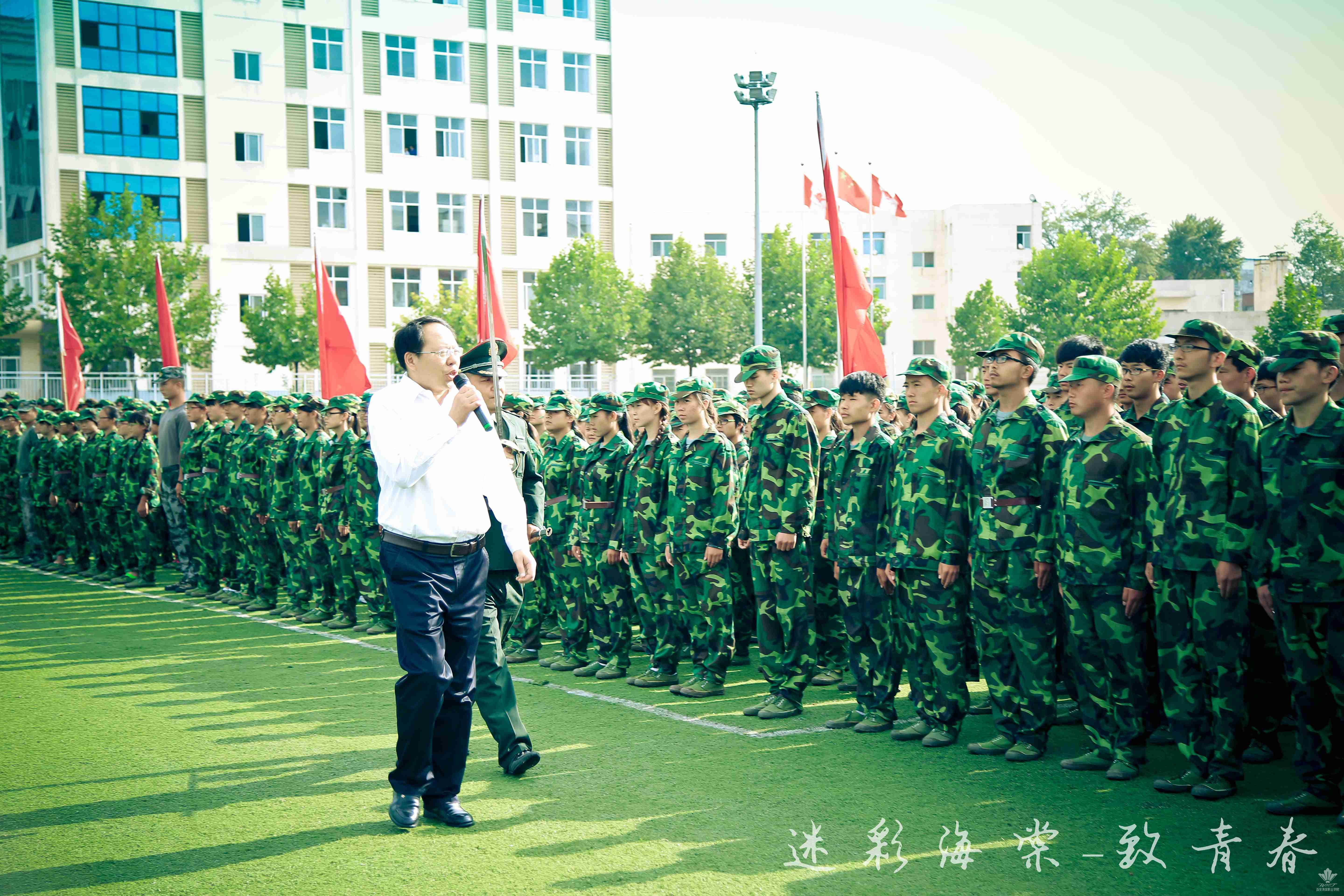 9月2日上午,beat365手机版官方网站田径运动场上红旗猎猎、军歌嘹亮,身着绿色迷彩服的2015级新生排着整齐的方队,等待领导的检阅。2015军训