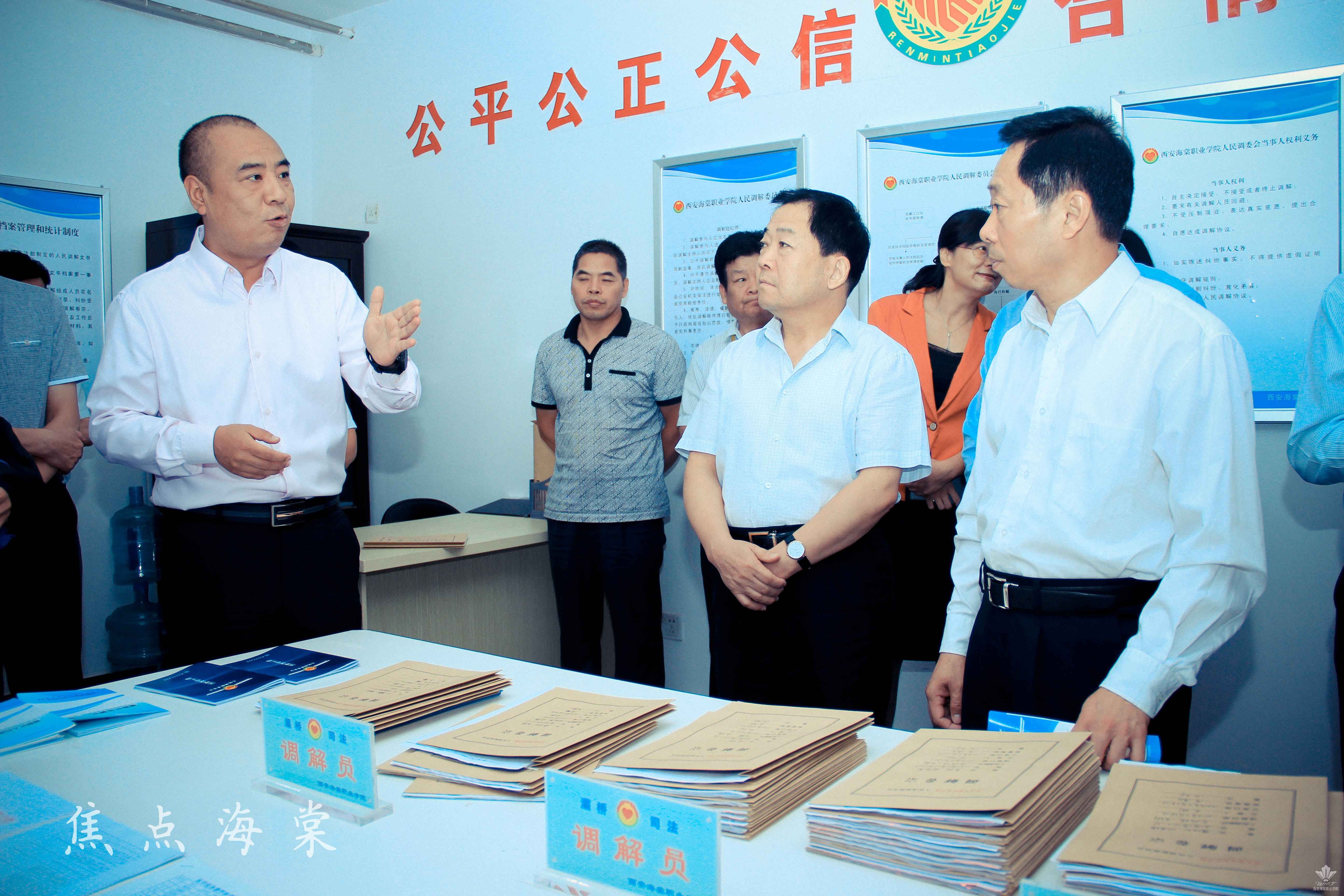 本次调研活动属于“全省推进灞桥区人民调解‘358’模式现场会”的环节之一。海棠学院人民调委会是灞桥区“358”模式中的示范单位,调解工作受到了灞桥区、西安市等各级相关部门的肯定,先后有多位领导前来调研指导工作。
