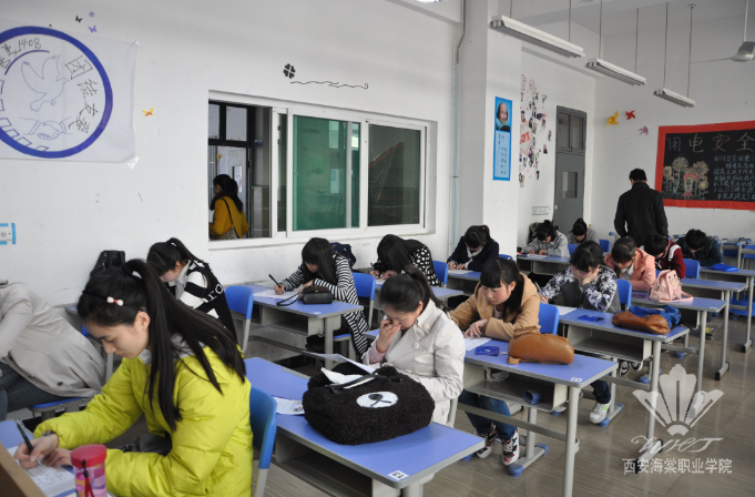 测试分为笔试和面试两个环节。笔试环节普通高中学生参加的是职业适应性测试,“三校生”等主要进行文化课基础测试。在笔试测评中,学生们认真答卷,考场秩序井然。笔试结束后,教务处还特别组织了面试环节,从而充分了解学生们的喜好、特长。最后,西安海棠学院还安排了专门的讲解人员引导考生参观学院,帮助大家了解学院的教学环境和校园环境。