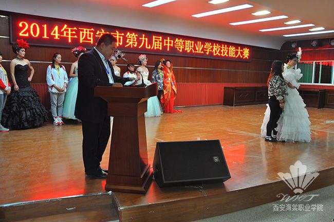 西安市第九届中等职业学校技能大赛化妆分赛于10月23日在西安海棠美学职业学校隆重举行。出席本次活动的嘉宾有西安教育电视台陈菊明女士、西安海棠美学职业学校宋党助校长及相关领导出席,会议由怀冰主持。
