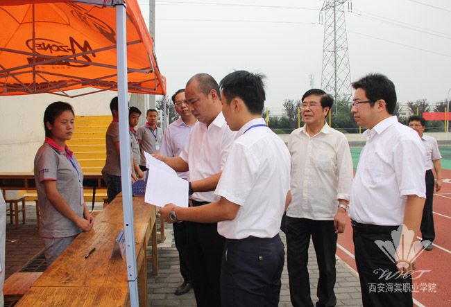 8月17日上午,海棠学院理事长王卓在职业学院院长冯居秦、理事会秘书长何建华、学院党委副书记王爱民、副院长吕博、技师学院院长宋党助、宣传处处长郭峰、招办主任王智锦等陪同下深入招生接待第一线,视察了2014级新生接待准备工作。